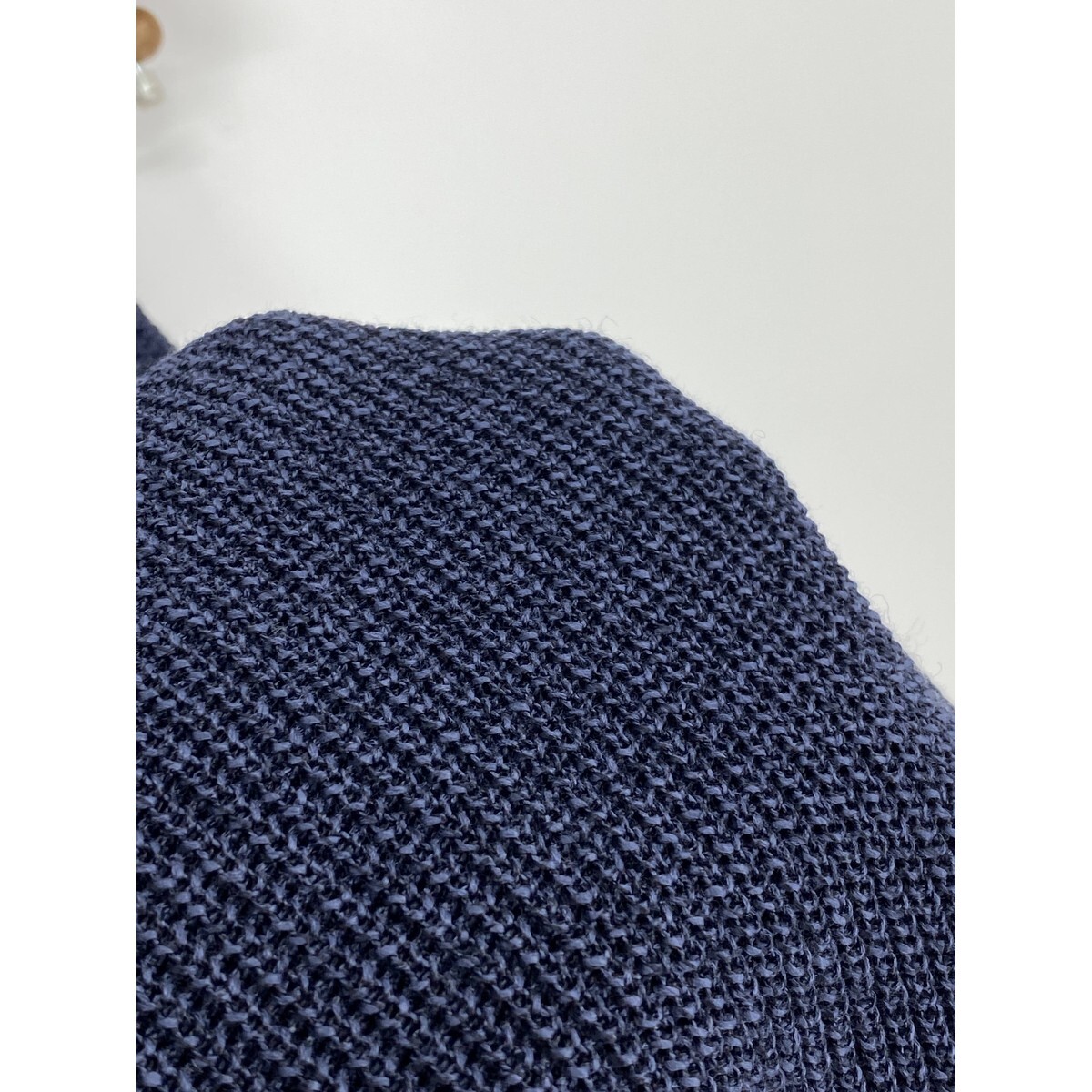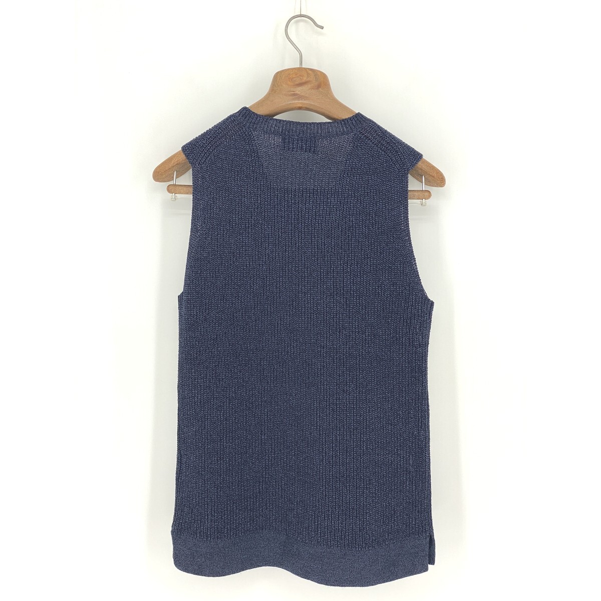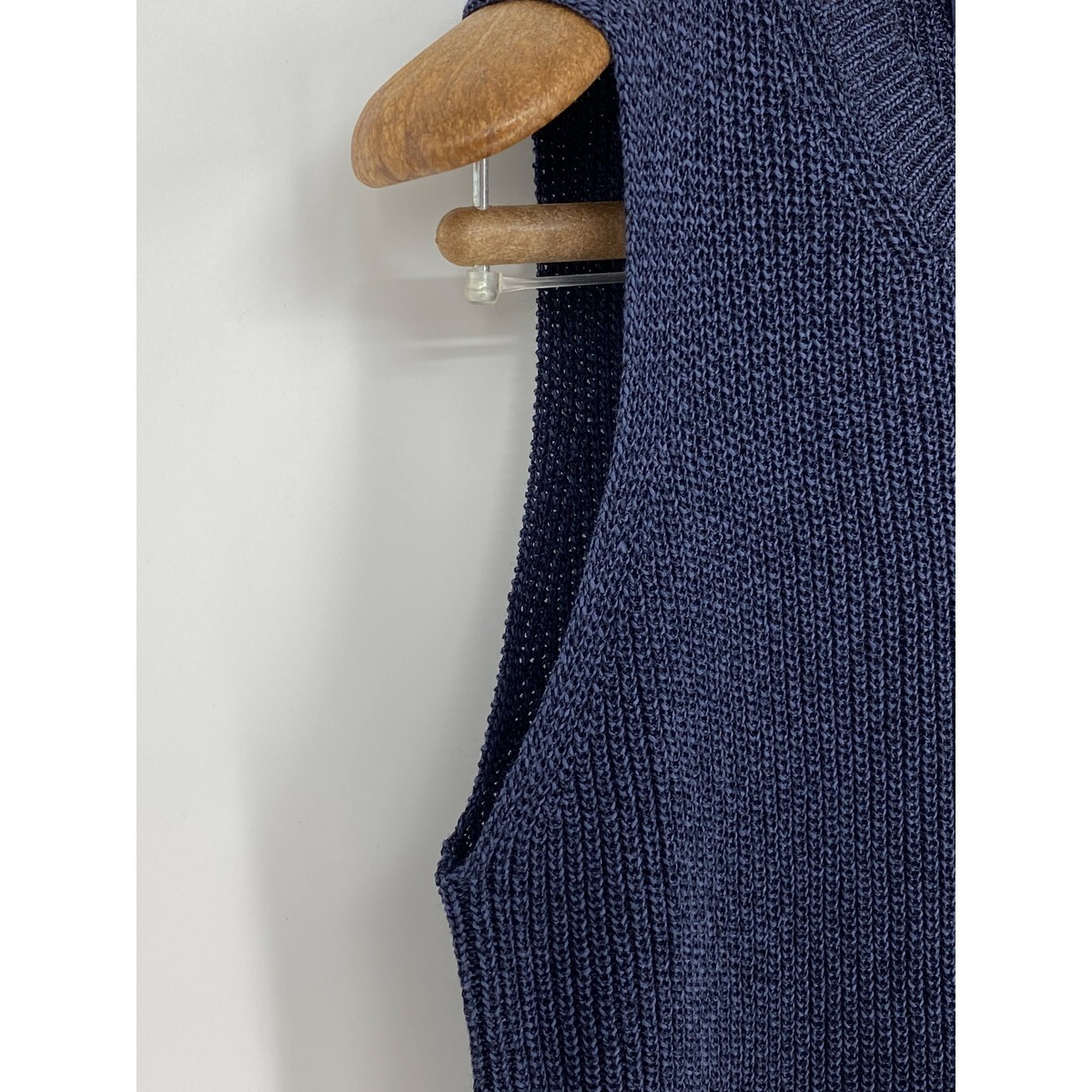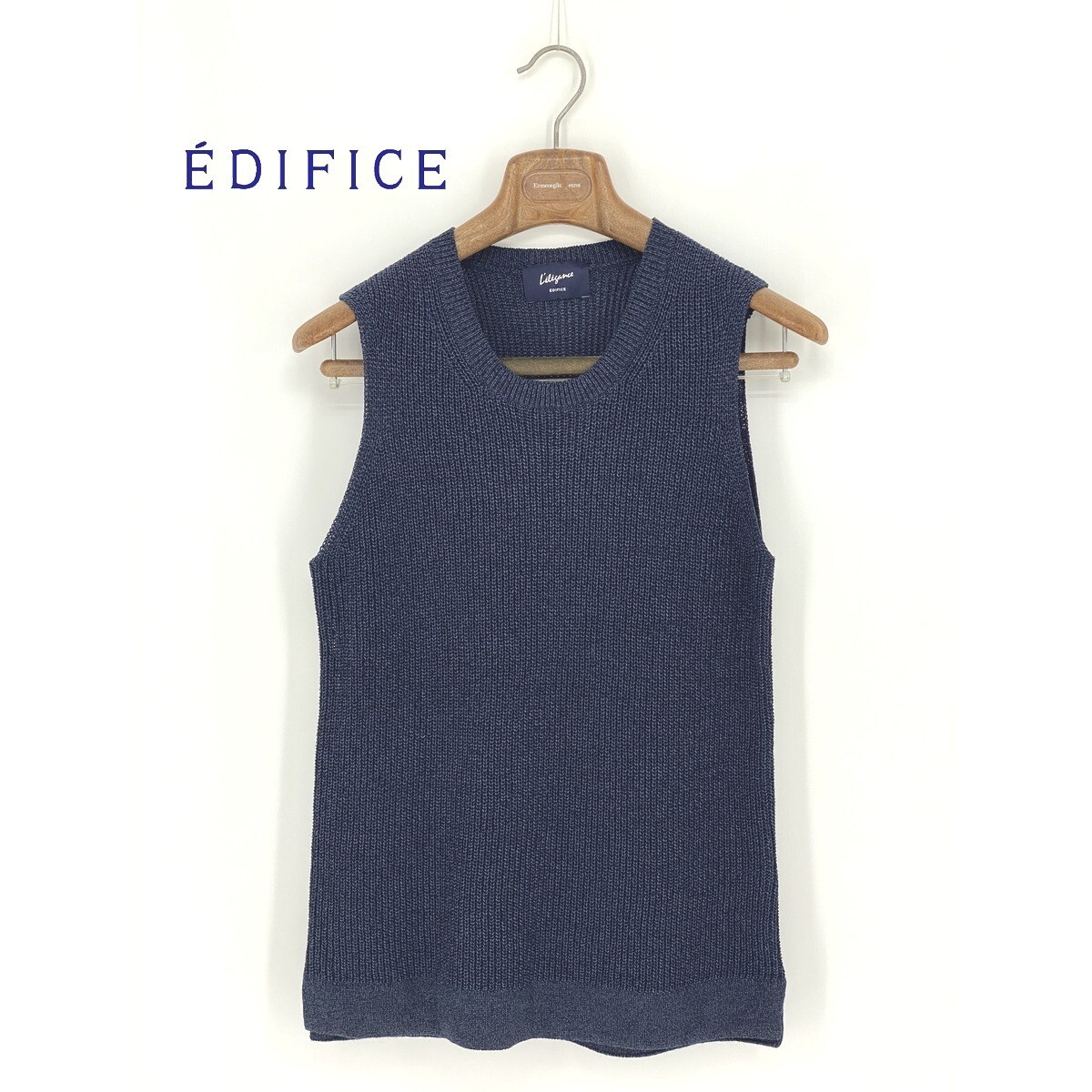 B0627/極美品 EDIFICE エディフィス Lelegance コットン 和紙 クルーネック ローゲージ ベスト ジレ ニット セーター 44 M 紺 青 メンズ