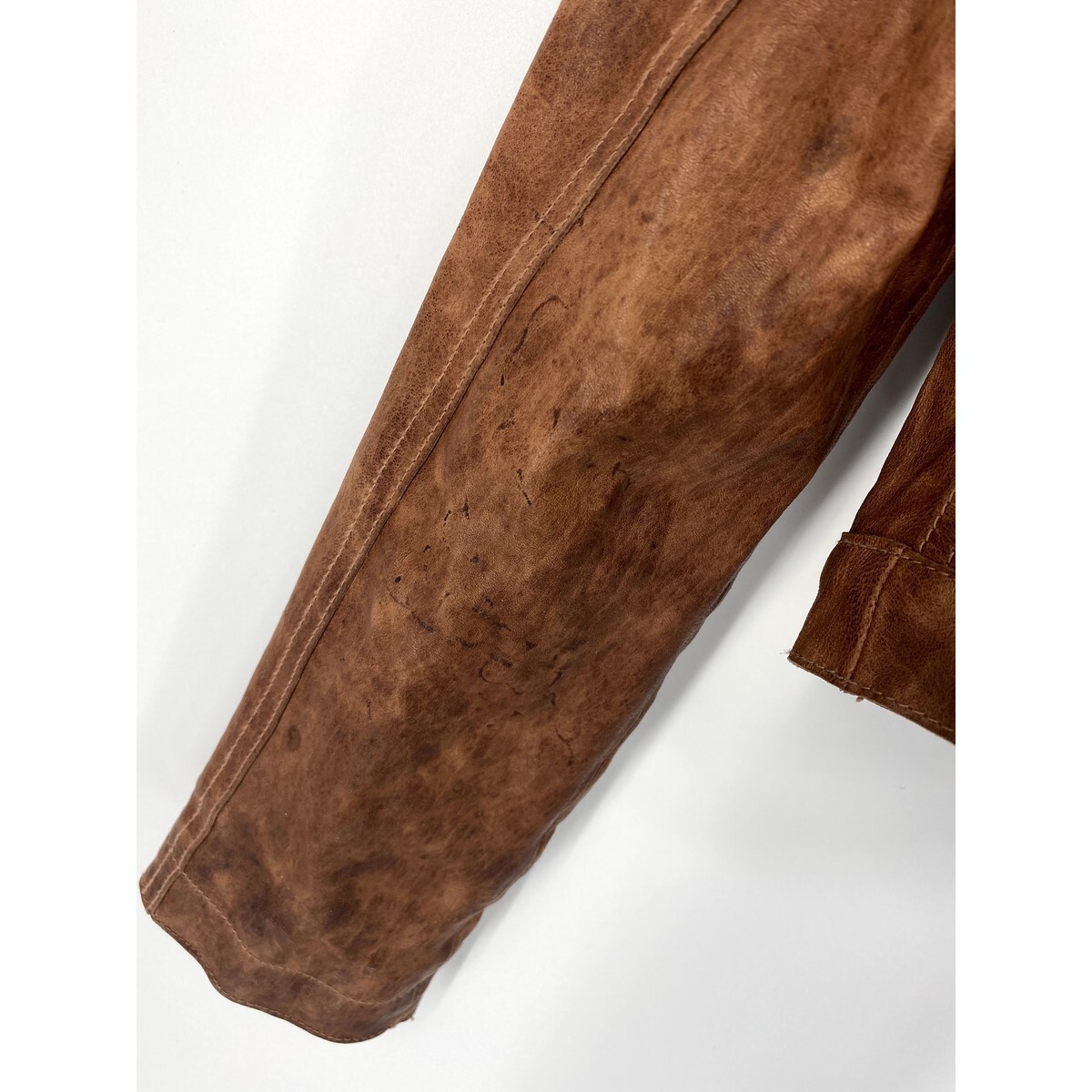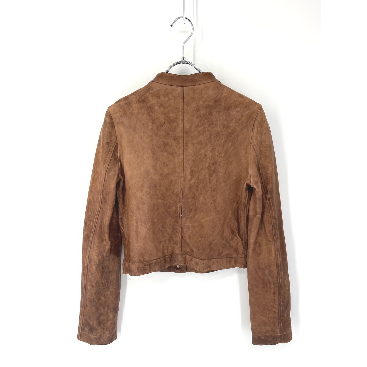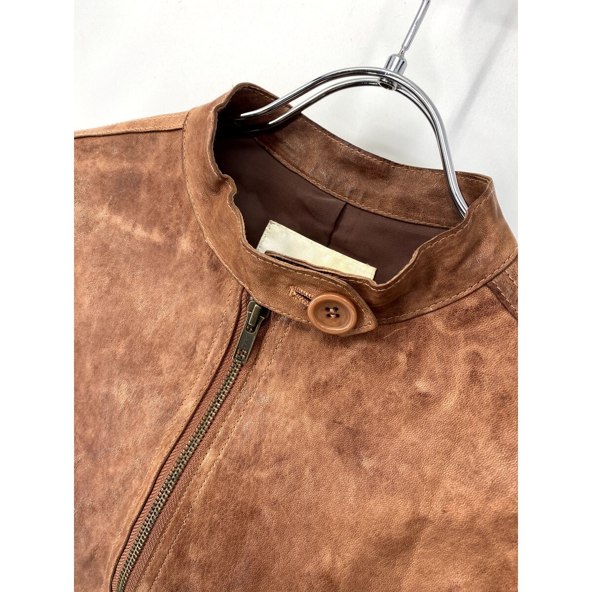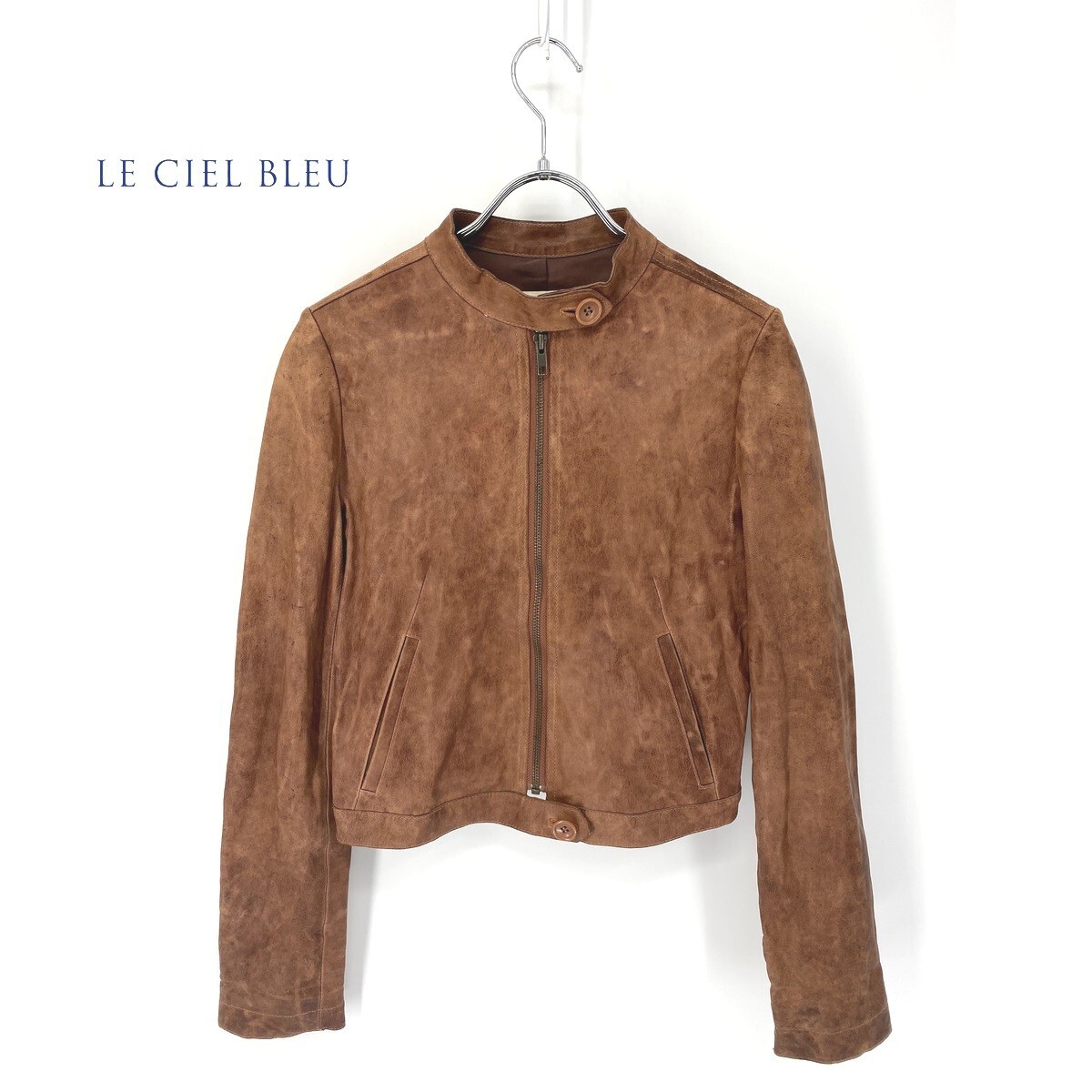 A6673/美品 秋冬 LE CIEL BLEU ルシェルブルー 本革 羊革 ラムレザー ショート シングル ライダース ブルゾン ジャケット 40 茶/レディース