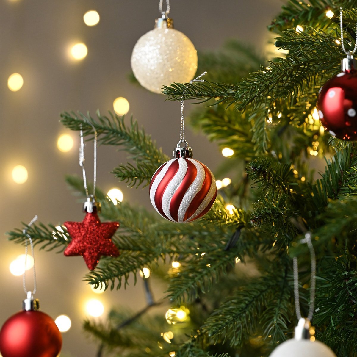 ボールや星型のオーナメントが計35個のセットとなっており、クリスマスツリーを華やかに彩ってくれます。