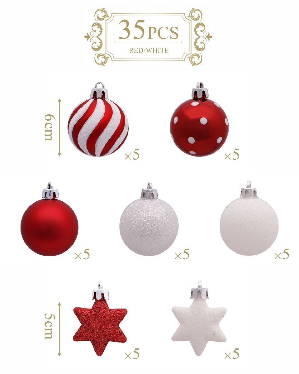 クリスマスツリーオーナメント アソート 35個セット RED/WHITE オーナメントボール 装飾 Xmas Christmas デコレーション インテリア 雑貨