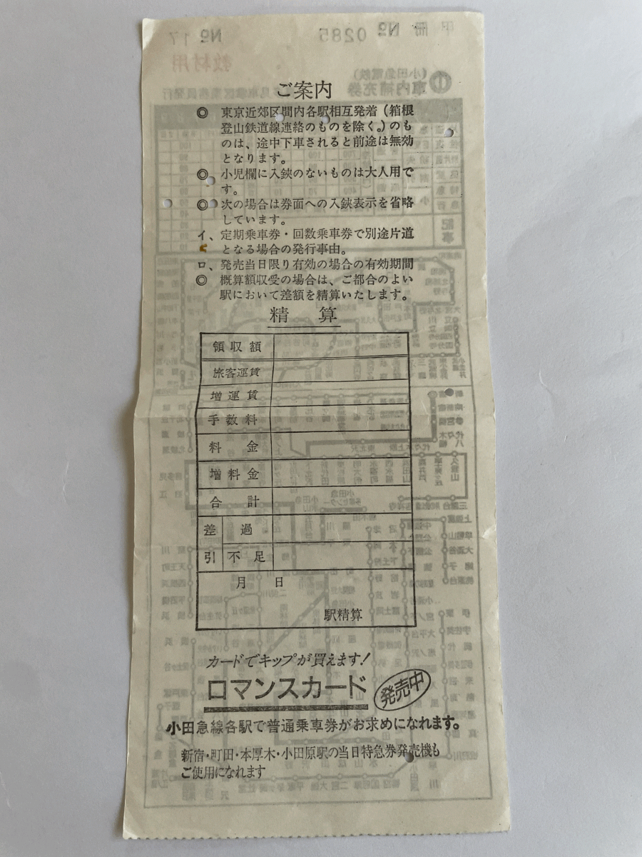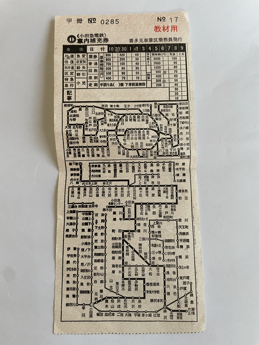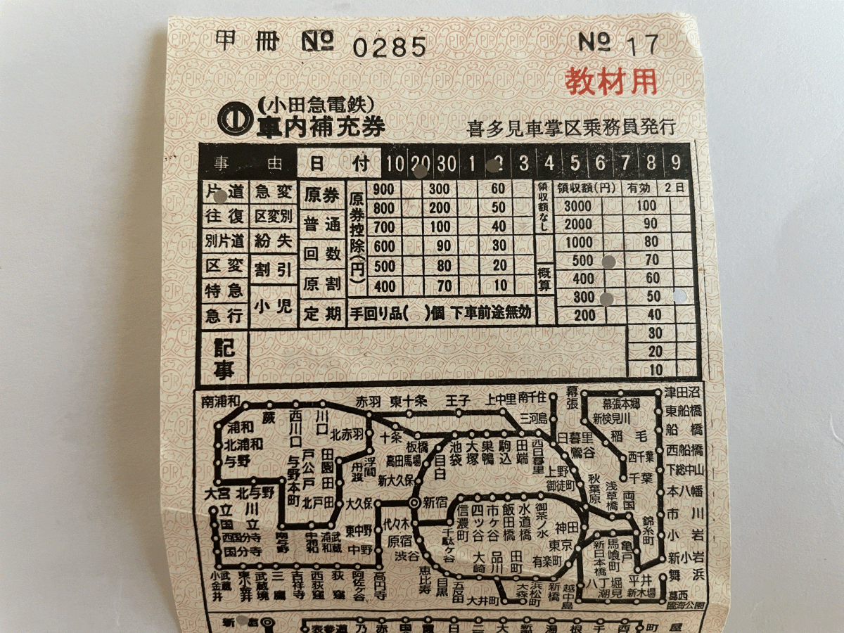 小田急電鉄 車内補充券 喜多見車掌区乗務員発行