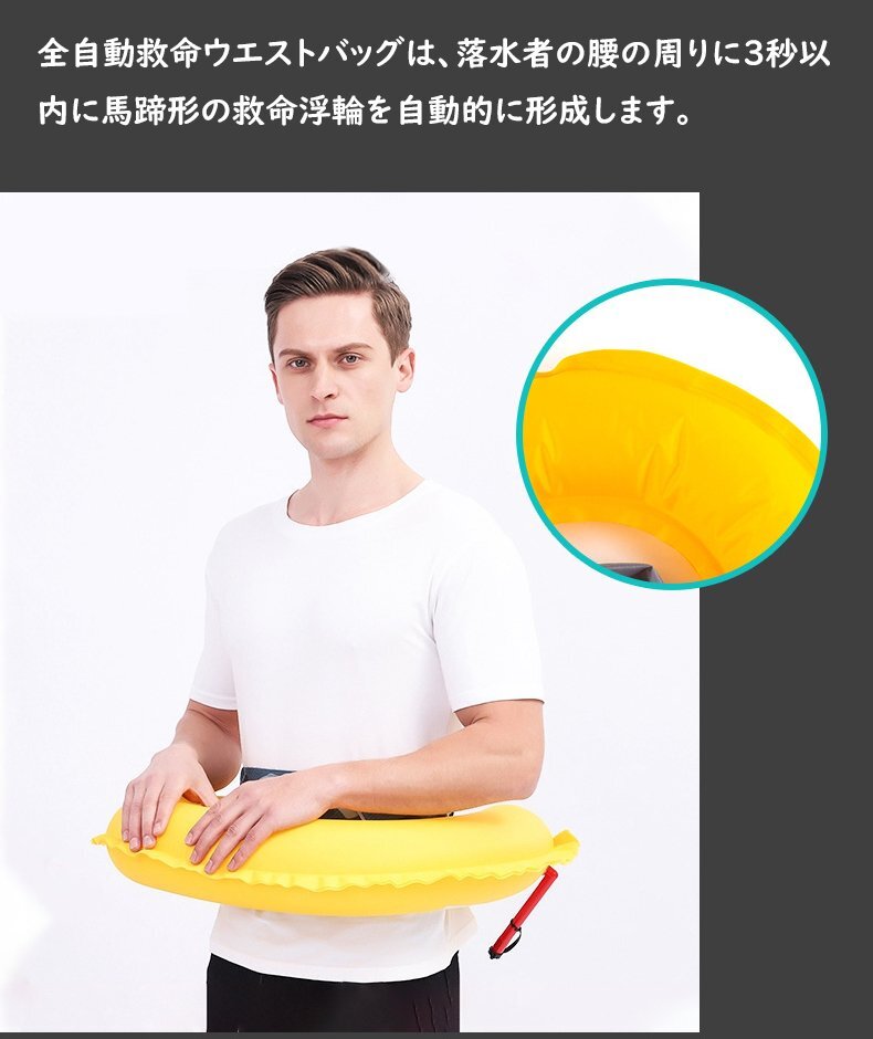 インフレータブルライフジャケット ウエストタイプ自動膨脹式 大人用 フリー 釣り用 軽量 男女兼用 収納ポケット付き