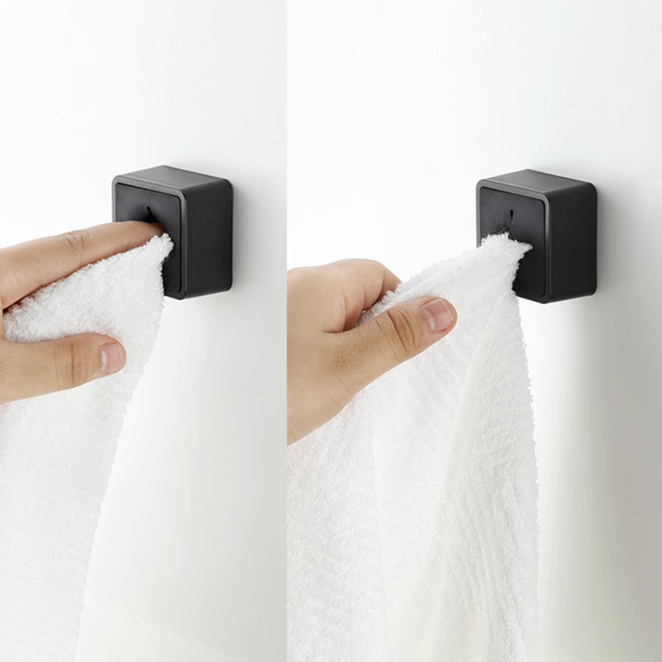 タオル掛けカラーは商品画像の1枚目をご確認ください。タオルをかける際、掛けてあるタオルを取る際にお手間を感じたことはありませんか?少し引っかかってしまう等のストレスを解消いたします。グッと押し込むだけでタオルをかけることが出来る、タオルホルダーを販売開始いたしました。【シンプルで無駄のないデザイン】シンプルで無駄のないデザインで今あるインテリアの邪魔をしません。清潔感のあるカラーなのでキッチンやお風呂場、脱衣所などにも違和感なく設置できます。【コンパクトでかさばらない】タオルの横幅に関係なくお使いいただけるのはこの商品の強みです。さらにホルダー自体がコンパクトなのでシンクしただけでなく洗面所やタイルの壁などにも設置可能です。【家族で使い分けも可能】複数ご購入頂き、各タオルを掛けることでご自身のタオルスペースをかさばることなく作ることが可能です。家族でタオルを使い分けたいときにはぜひご利用ください。【使用箇所】冷蔵庫/シンク下/トイレ/お風呂場/洗面台 等様々なシーンでお使いいただくことが可能です。シンプルでコンパクトの収納がお好きな方はぜひ1度お試しください。【サイズ】横幅4.7cm 縦幅4.7cm 厚さ2.5cm