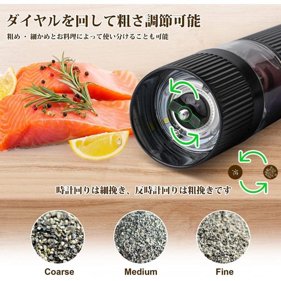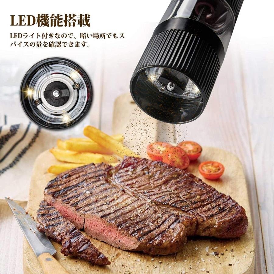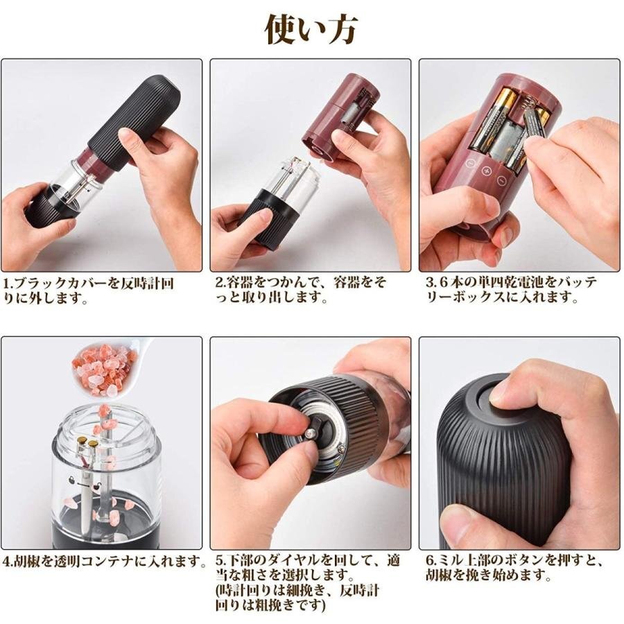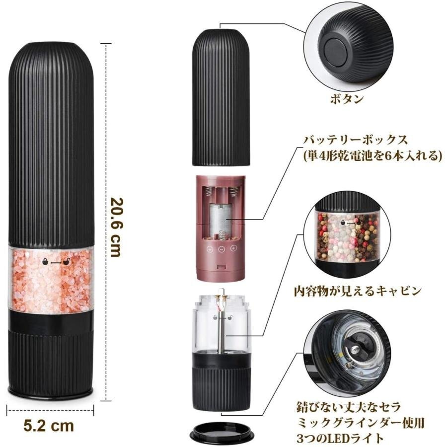 使いやすさ-この自動塩コショウ挽き器でボタンを押すだけで簡単に料理を味付けできます。単4電池6本を使用していますが、含まれていません。