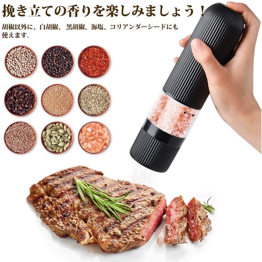 電池式ソルトアンドペッパーグラインダーセット電気自動片手ソルトペッパーミル、明るい光。