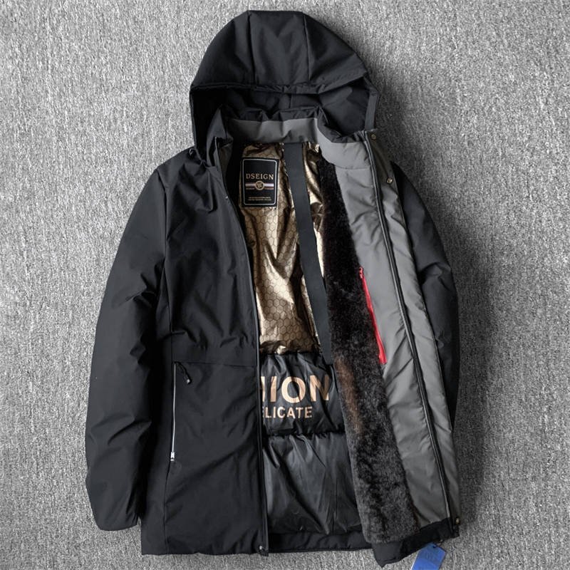 最上級の暖かさ 国内未販売 新品 メンズ中綿ジャケット ミディアム丈 冬 裏起毛で厚手 取り外し可能なフード 防寒 防風 コート/黒T6152-2XL