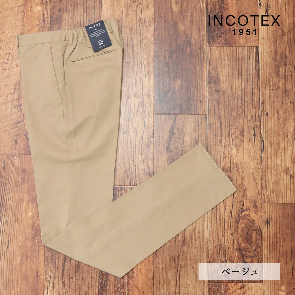 24AW/INCOTEX/44サイズ/美脚イージーパンツ 1W0084 4055C ストレッチ ウエストゴム 製品染め加工 新品/ベージュ/mb156/