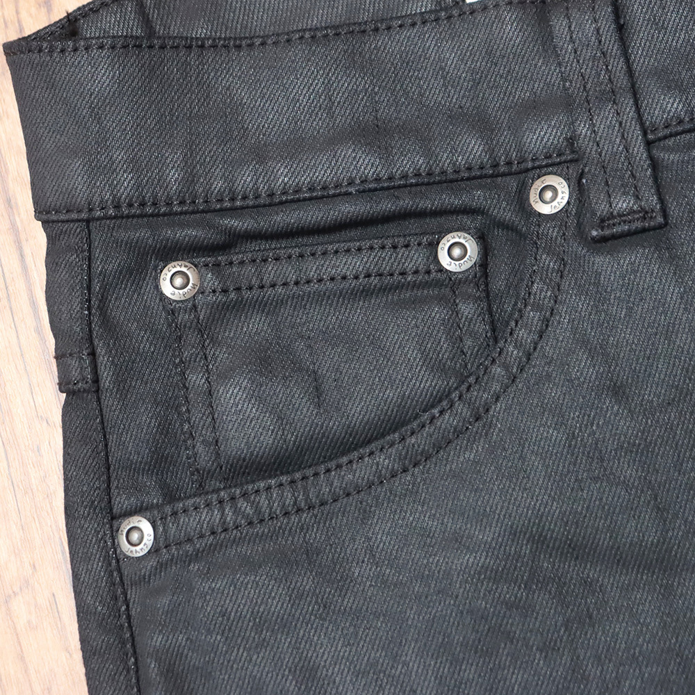 11.5ozのオーガニックコットンとストレッチ素材を使用し、快適な穿き心地と美しいフィット感を両立。穿き始めはハリのあるブラックデニムらしいシャープな表情ですが、着用と洗濯を重ねることで徐々にグレーがかったヴィンテージ感が生まれ、自分だけの風合いを楽しめます。