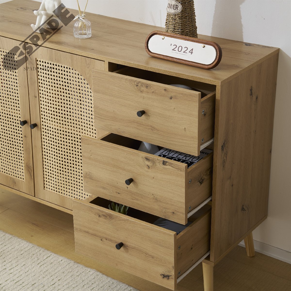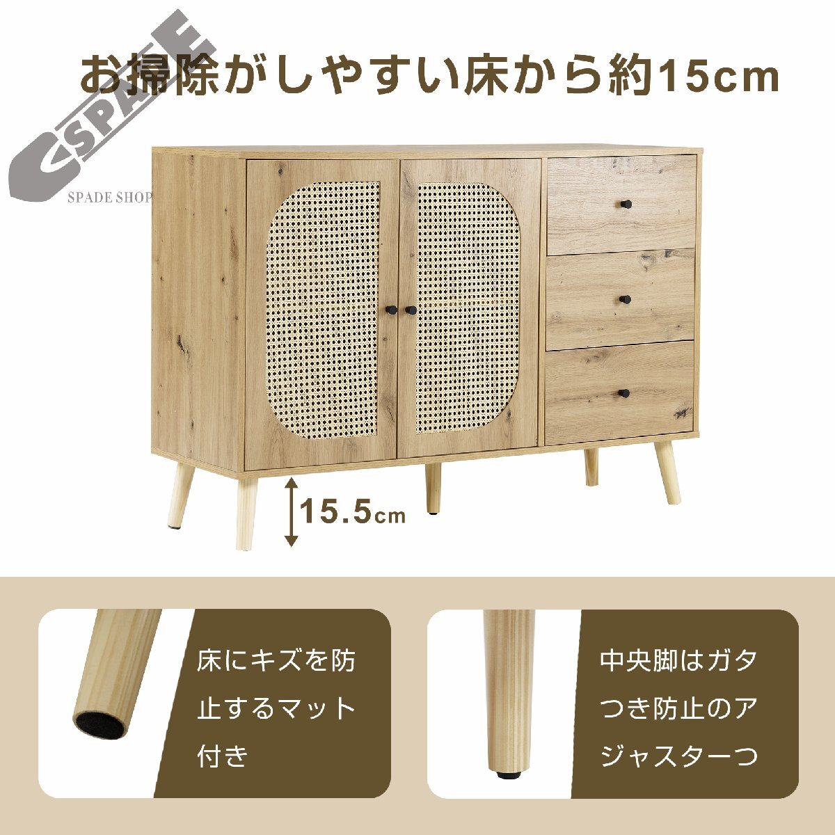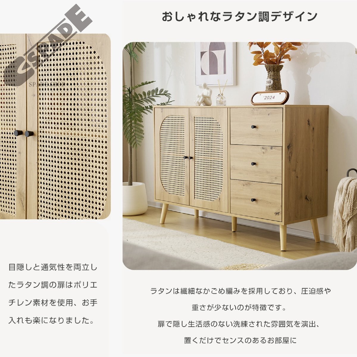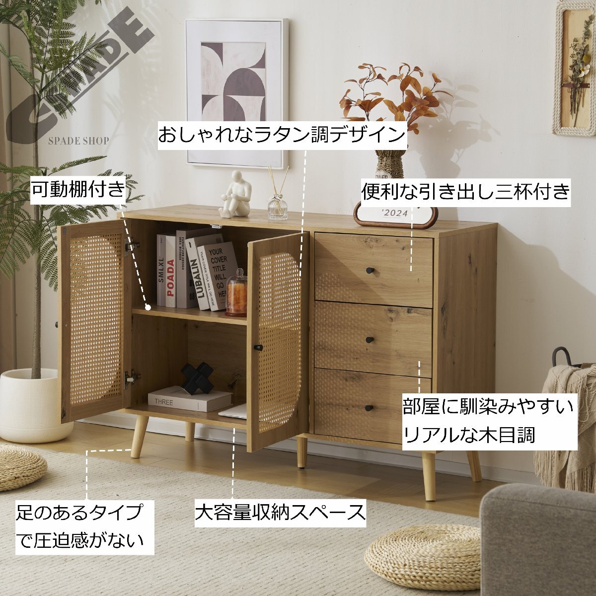 【国内発送】キャビネット サイドボード チェストラタン調 ラタン風 引き出し付き 大容量 収納棚 リビング 収納 ローボード 収納チェスト