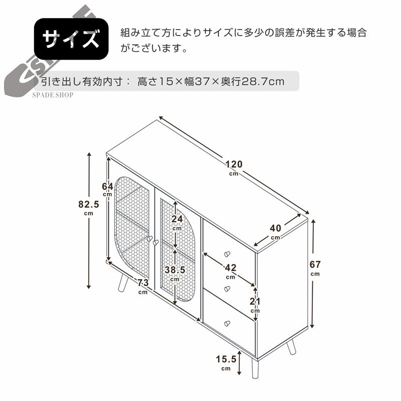 • 【大容量収納スペース】天板は幅120cmと広々、TV台として使用したり、大きめのインテリア雑貨などもディスプレイできます。またお茶やコーヒーをいれる作業台としてもお使いいただけます。奥行は40cmで、家電や本、小物など様々な物のまとめ収納を可能に
