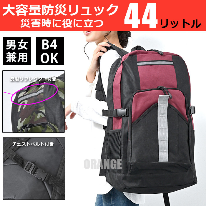 送料無料 大容量 44リットル 防災 リュック メンズ レディース 防災リュック バックパック リュックサック グッズ 災害 避難用品 ワイン■