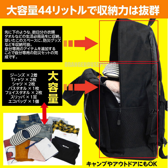 大容量44リットルの超特大リュックサック。