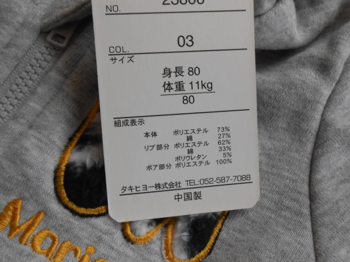 BA05◎タキヒヨー 裏起毛パーカー とんがりフード グレー×牛さん模様 80㎝ 新品未使用