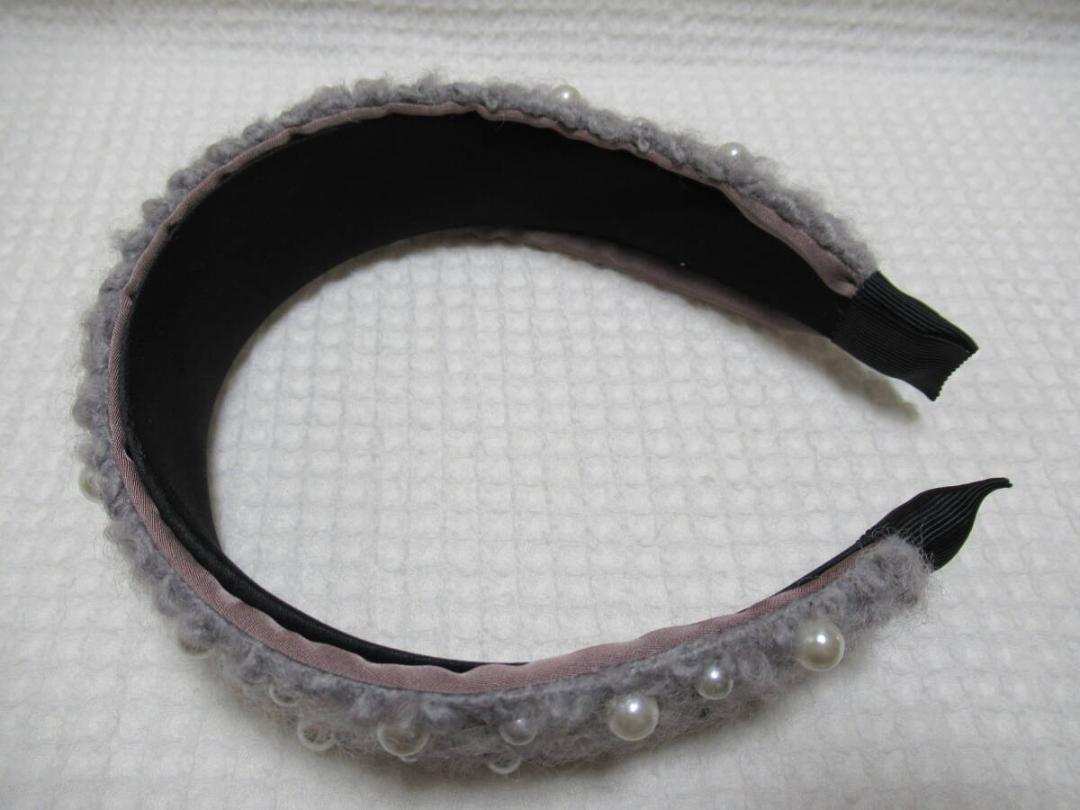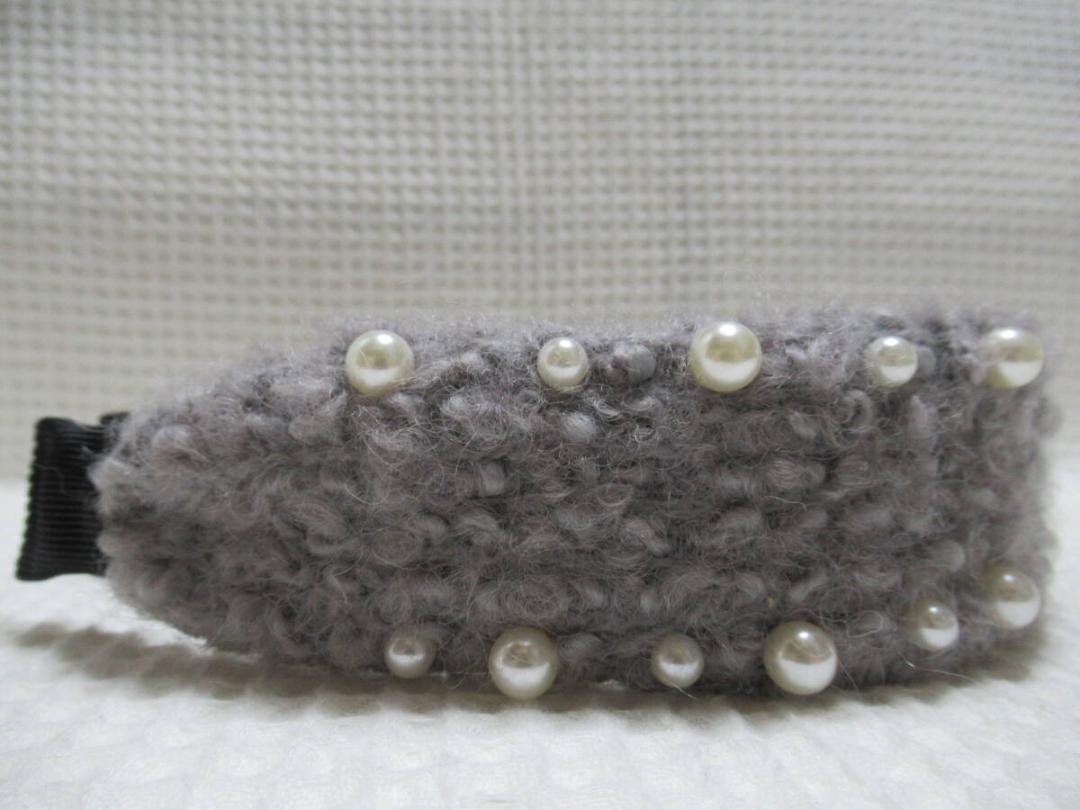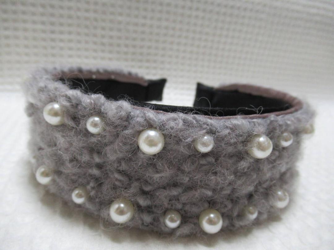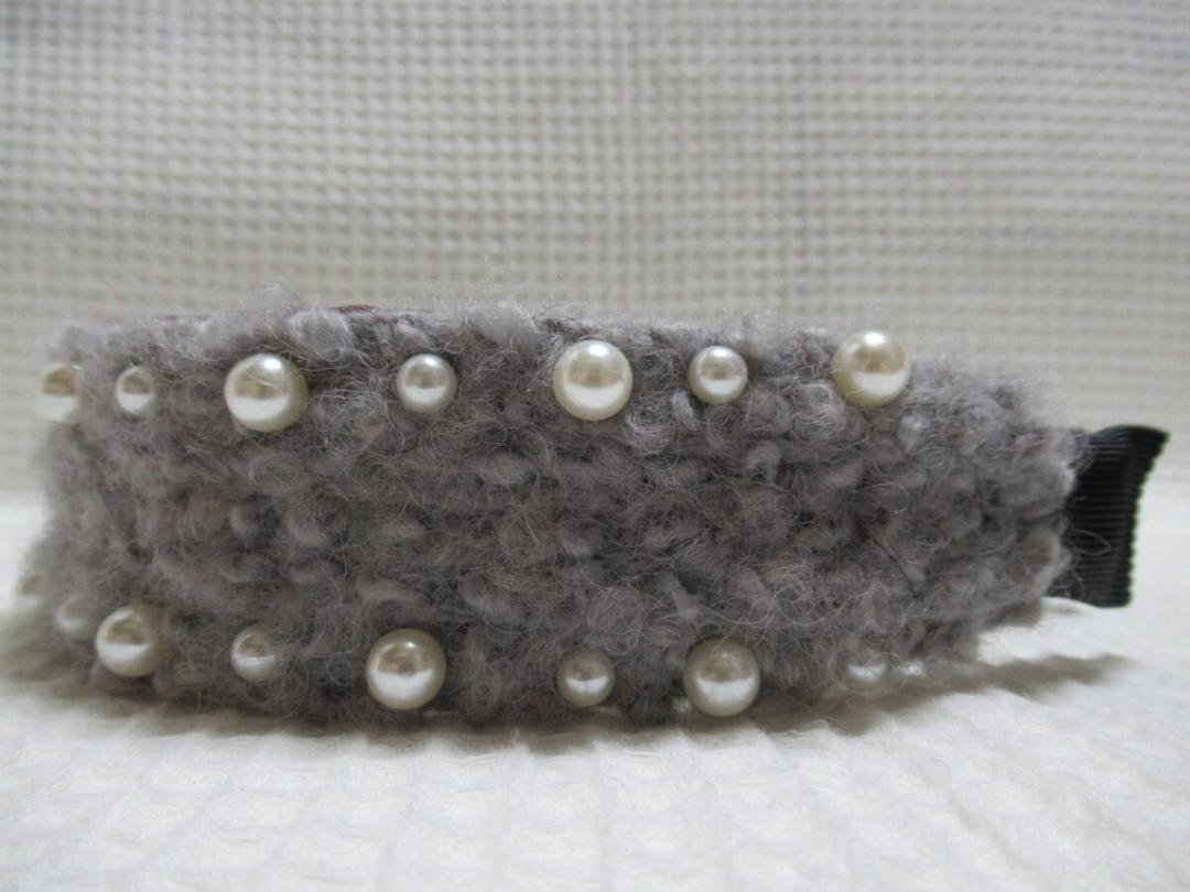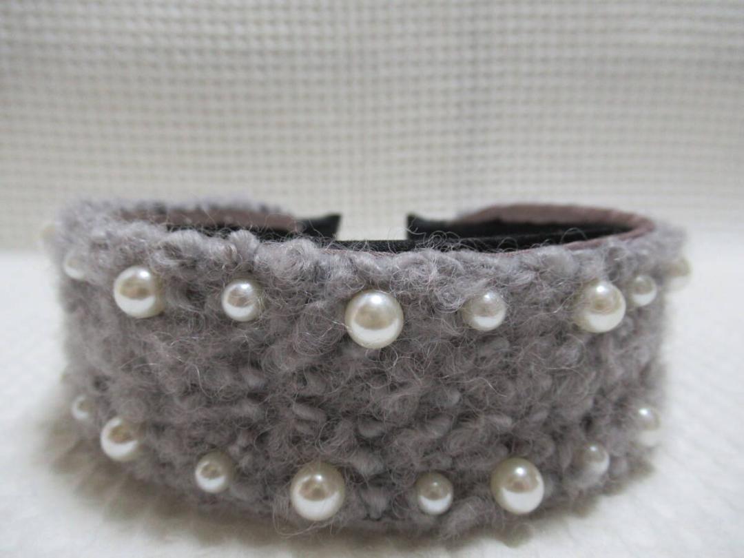 2サイズのパール付きボア系の生地カチューシャ グレー系