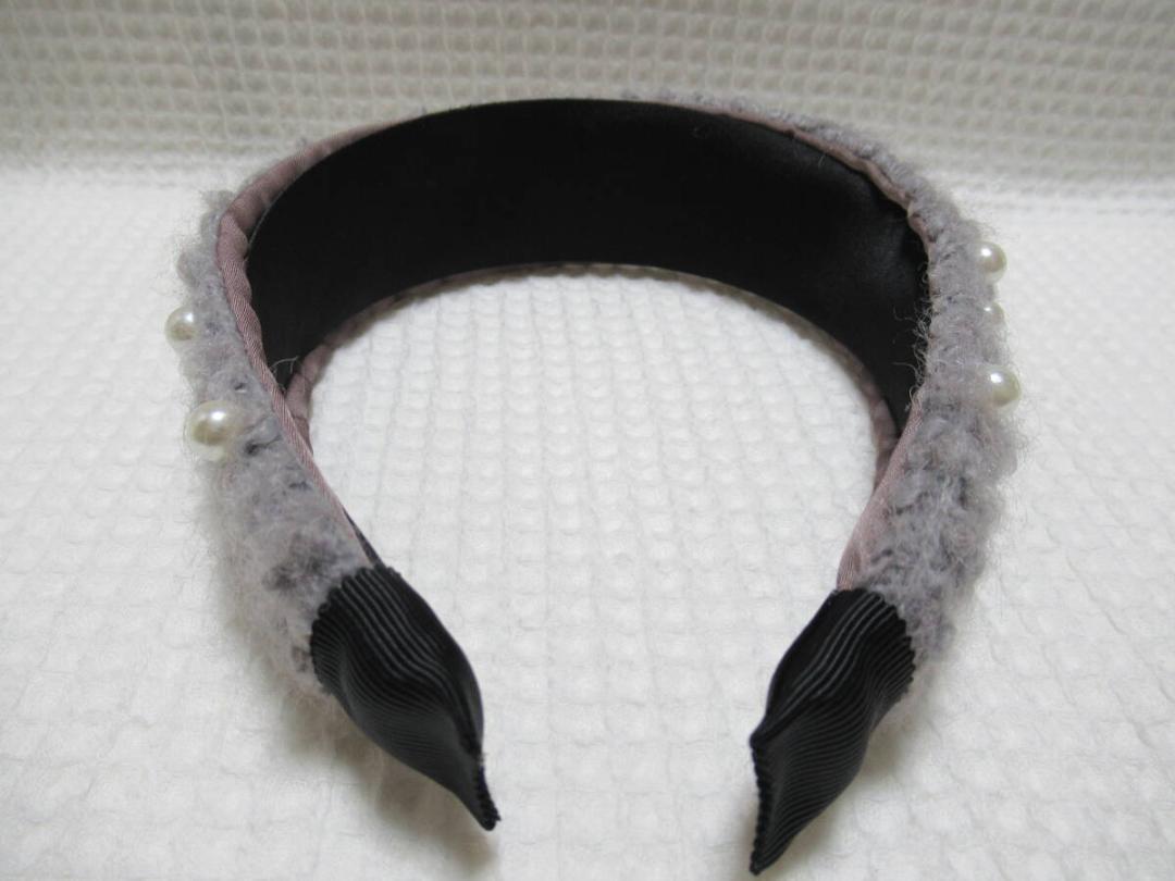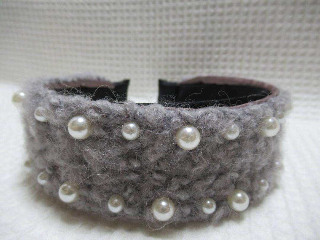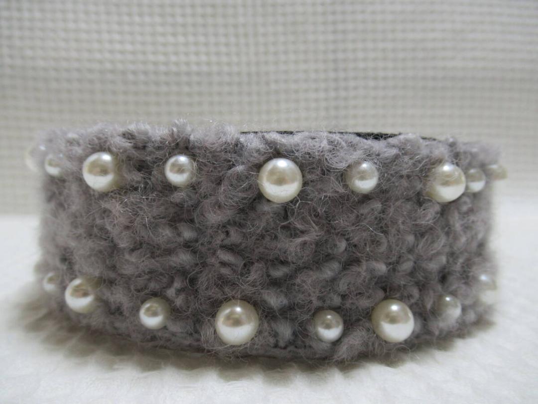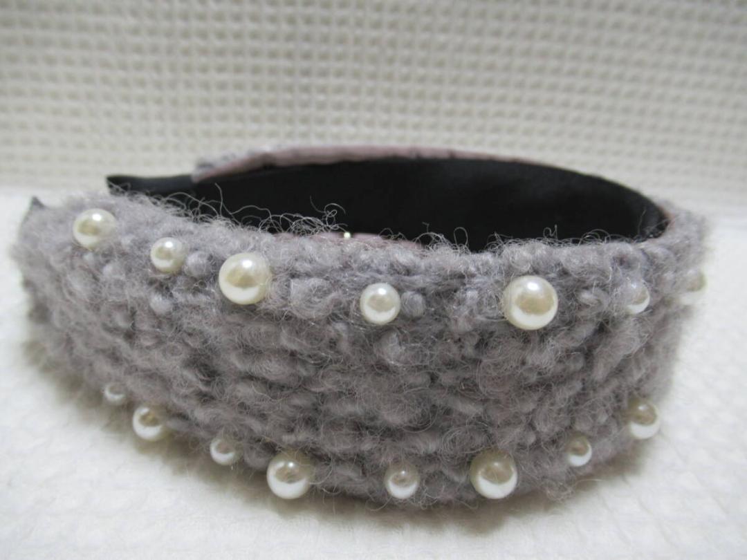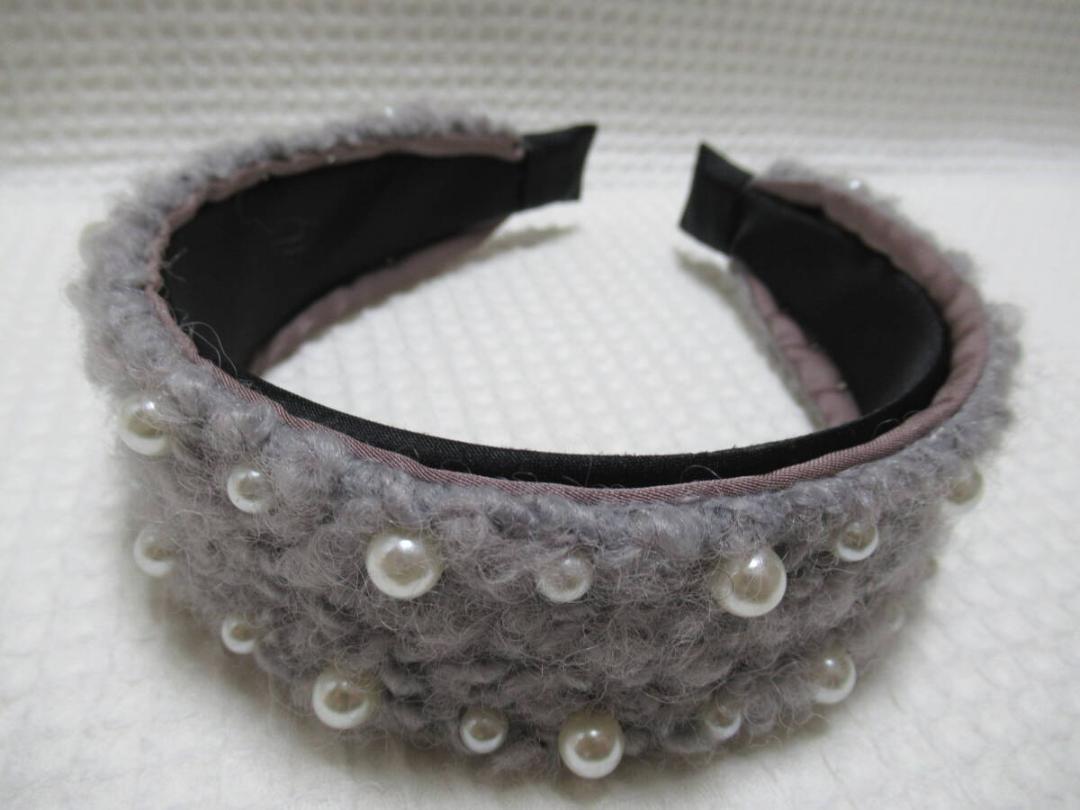 2サイズのパール付きボア系の生地カチューシャ グレー系