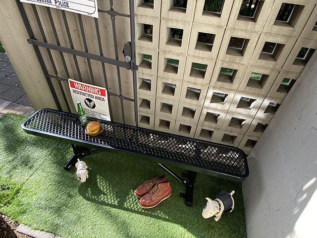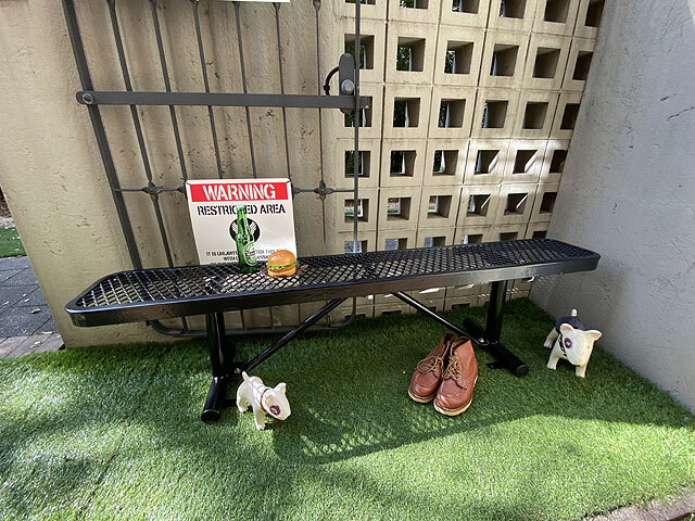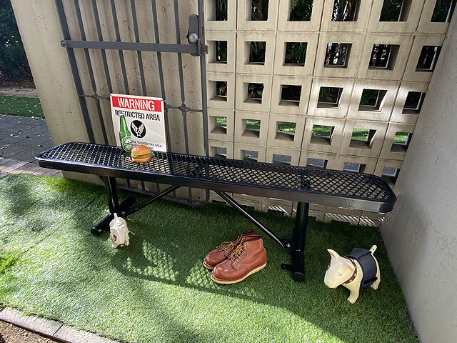 U.S.パークベンチはただ座るだけでのベンチシートではなくて、シーンをアメリカンに仕立て上げてくれる・・・・