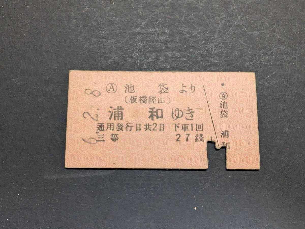 166 池袋より(板橋経由)浦和ゆき 通用2日 下車1回 三等 27銭 昭和6.2.8 切符 昭和初期