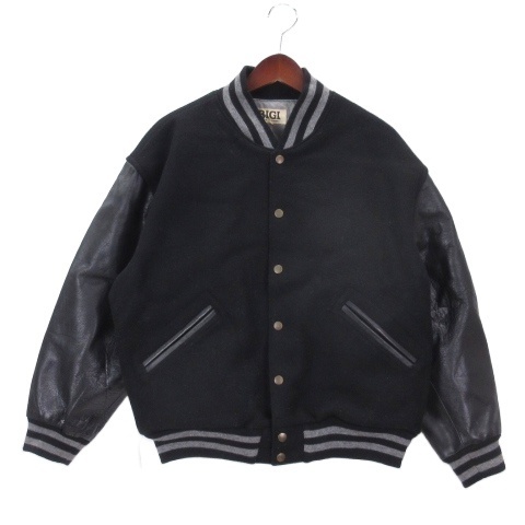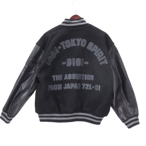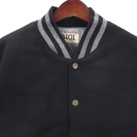 ビギ BIGI ウール スタジャン ジャケット レザーアーム ヴィンテージ M ブラック メンズ