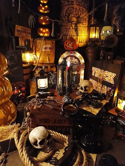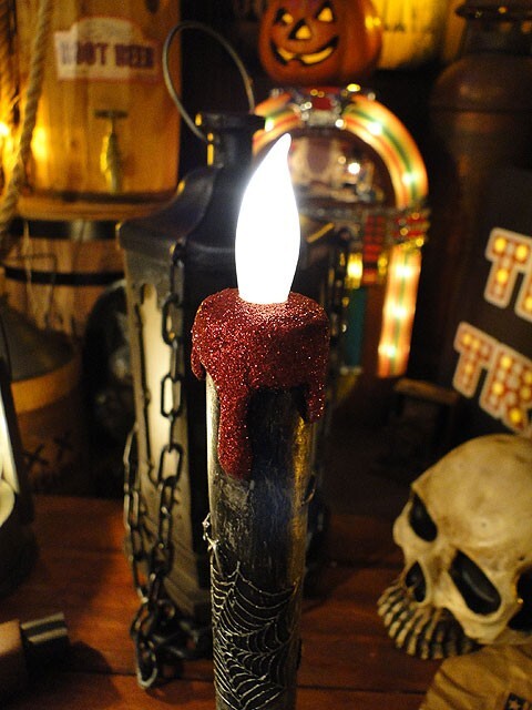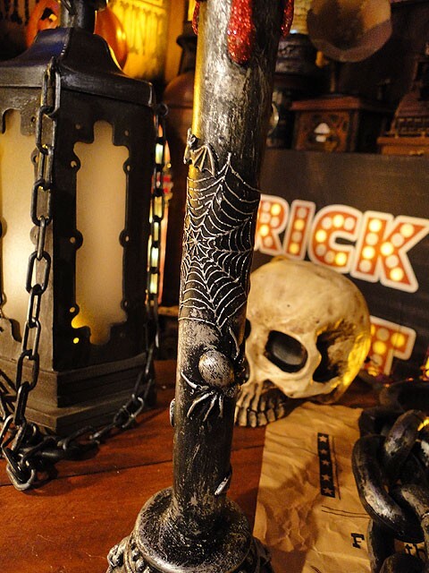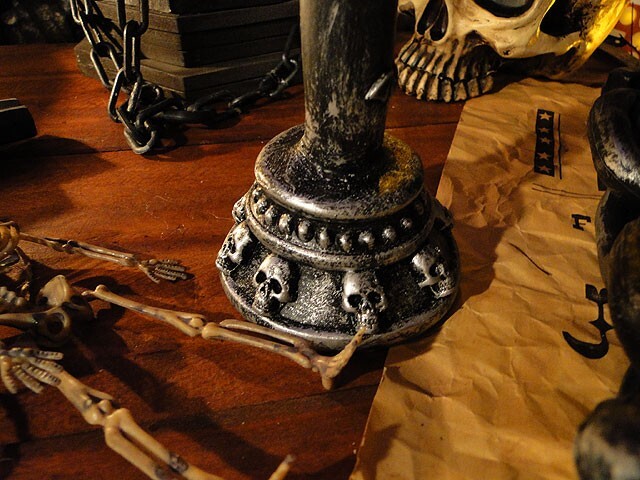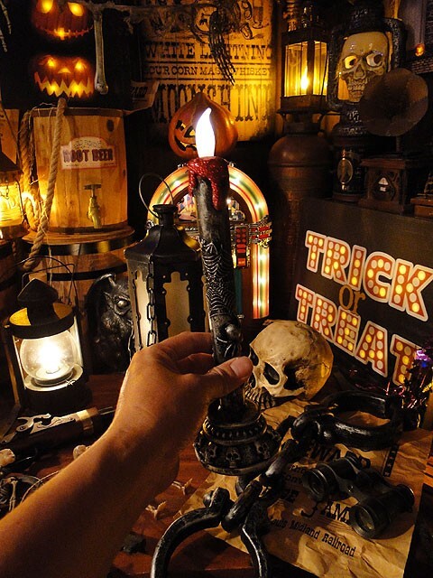 外国のオバケ屋敷の長いテーブルに置かれてそうなロウソクを置く台、キャンドルスタンドをモチーフにしたライトアップ機能付きディスプレイです。