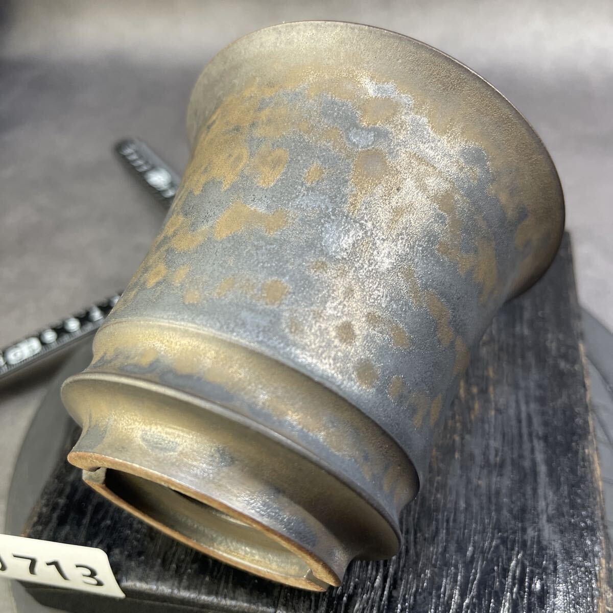 灰青と銅褐が溶け合う独特な表情を持つ釉薬。