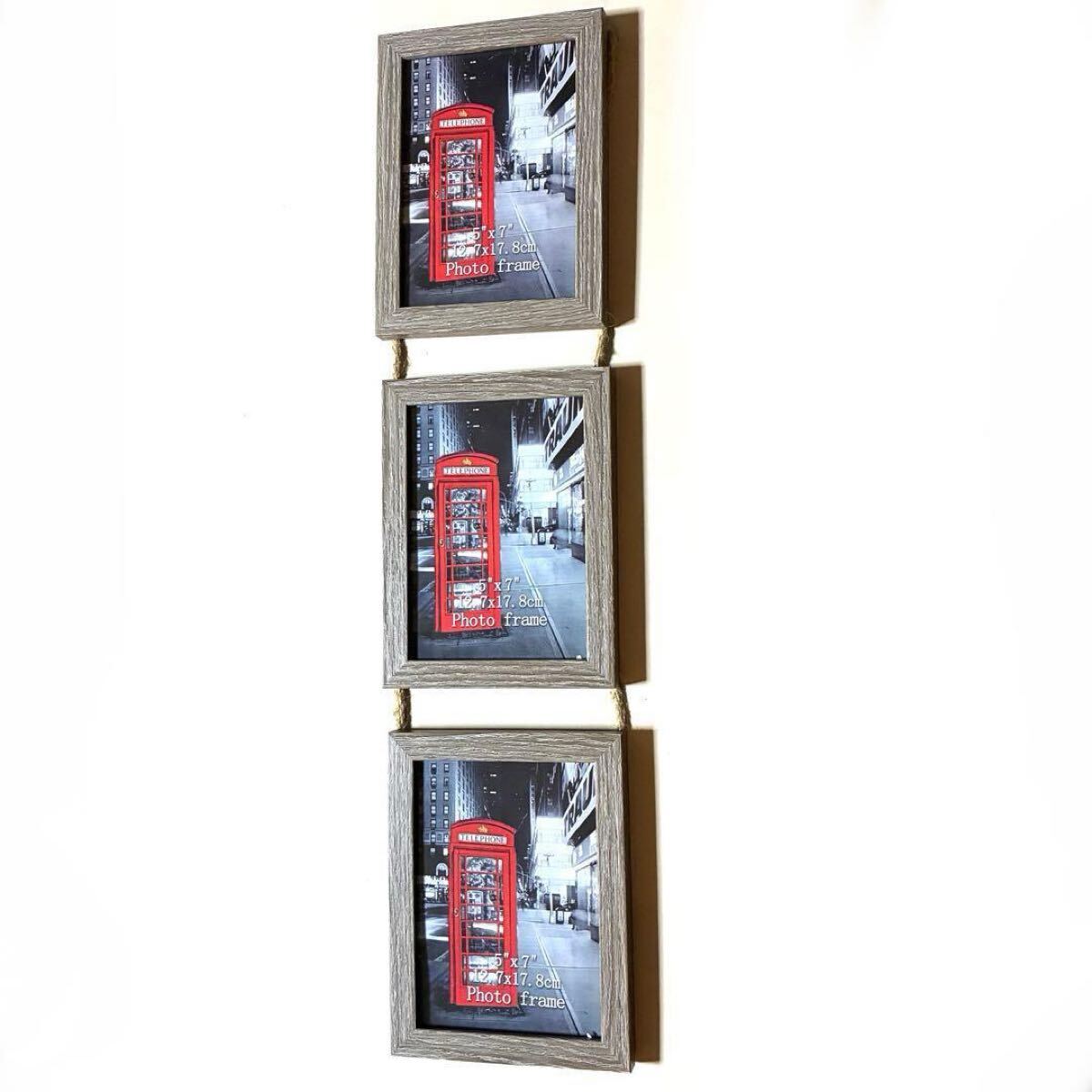 フォトフレーム 写真ケース 写真立て 3連 木目 麻紐 壁掛け おしゃれ