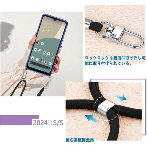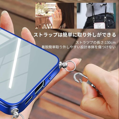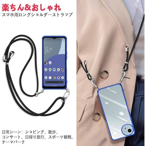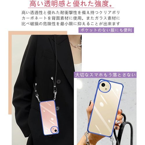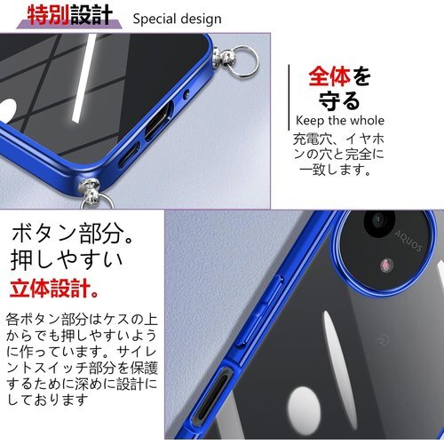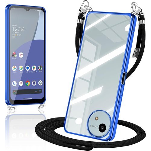 AQUOS wish4 ケース クリア ショルダー ウィッシュ4 SH-52E SHG13 A403SH スマホケース カバー 透明 TPU 肩掛け 首掛け 斜めかけケース 薄型 耐衝撃 シリコン メッキ加工 TPUバンパー ブルー 1565