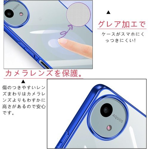 AQUOS wish4 ケース クリア ショルダー ウ 型 耐衝撃 シリコン メッキ加工 TPUバンパー ブルー 1565