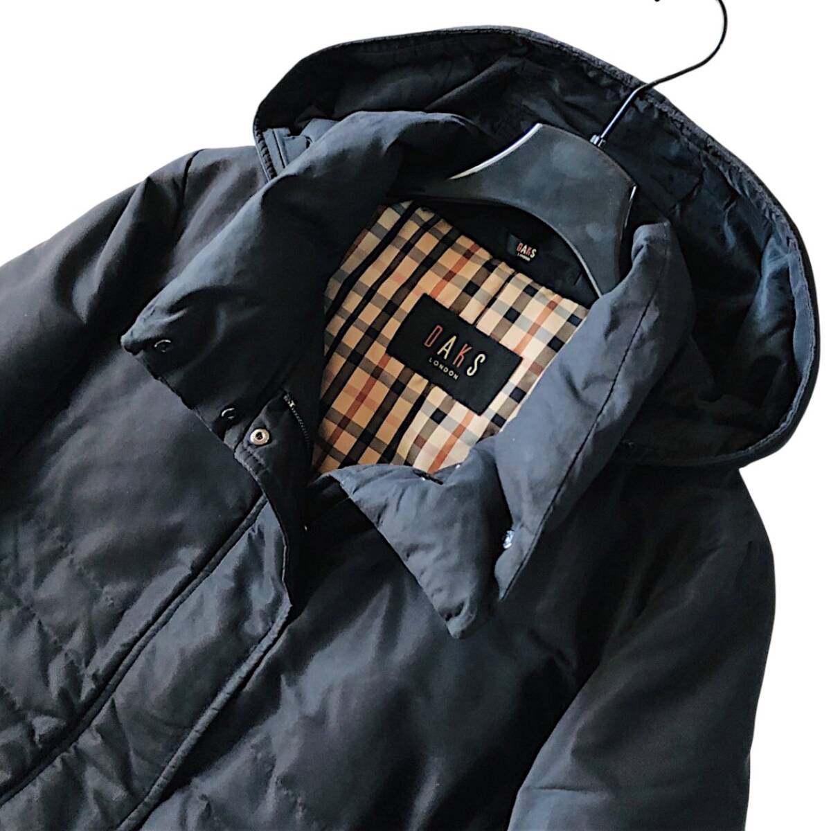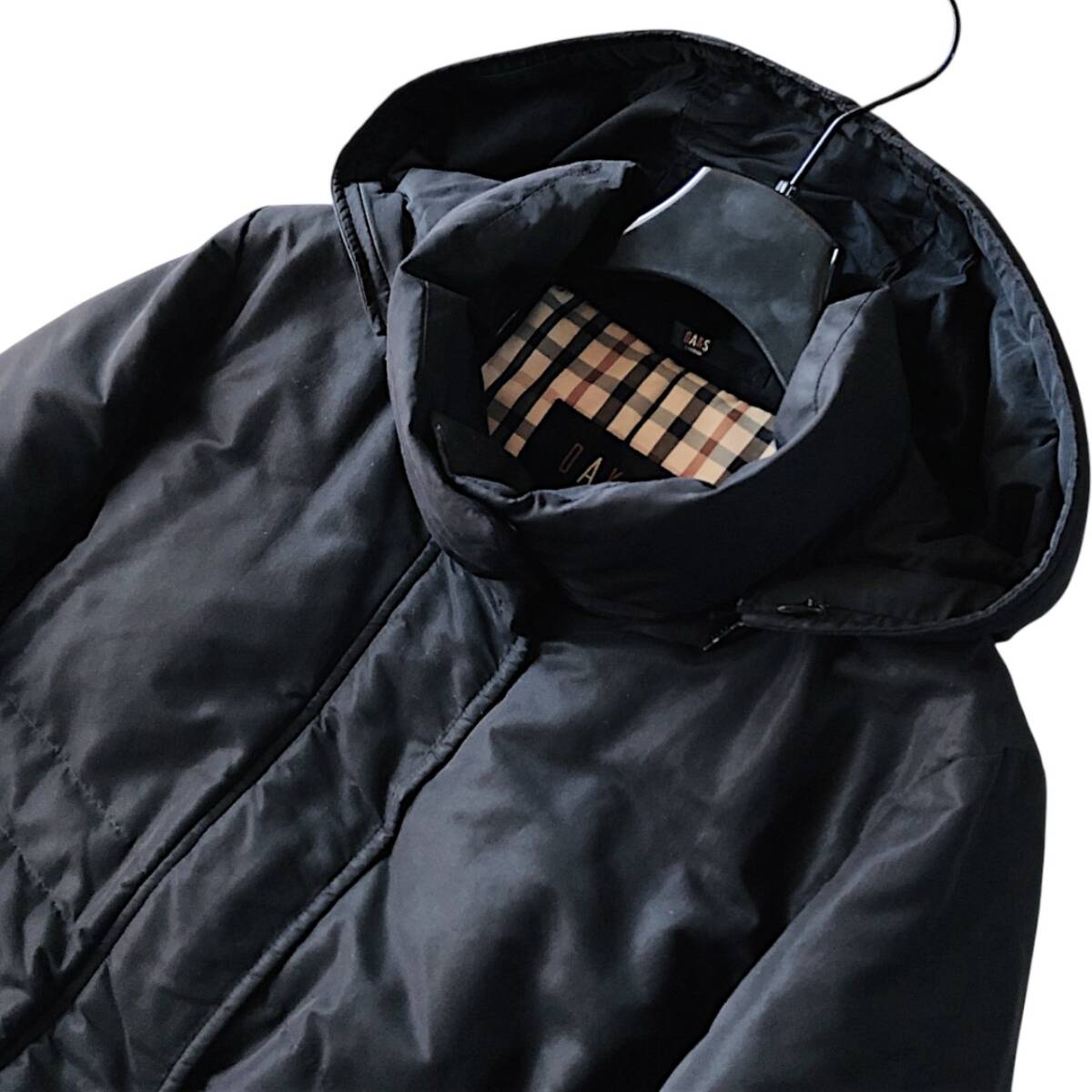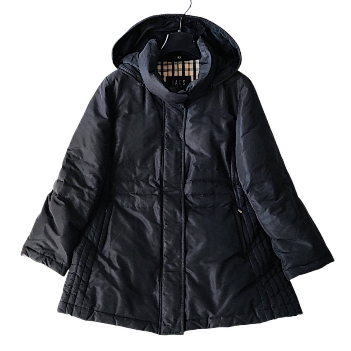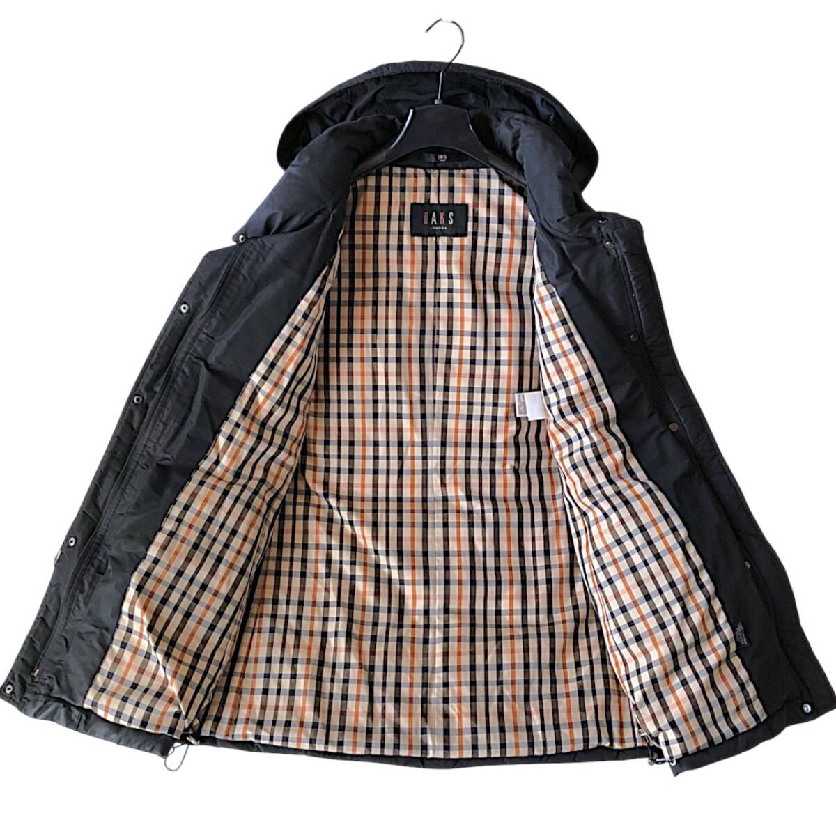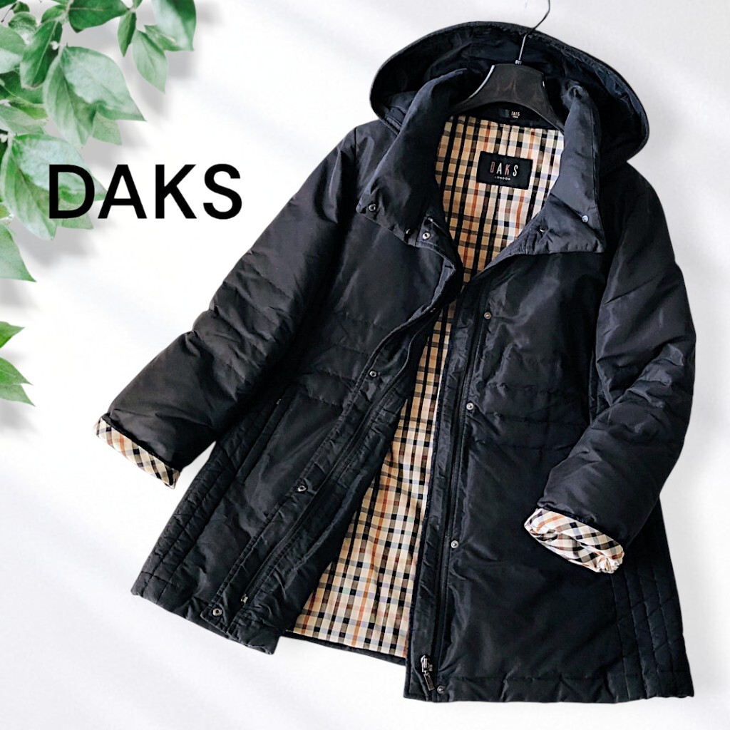 D21◆美品 ダックス DAKS 大きいサイズ 15AR XL LL 2L 前後 ハウスチェック フーディー ダウン フェザー コート 羽織り ジャケット 防寒