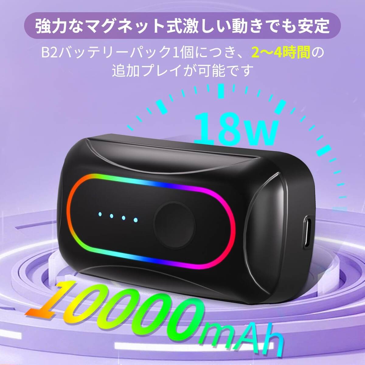 【10000mAh大容量バッテリー&ダブル速い充電の連続プレイ】10000mAhの大容量バッテリーを搭載し、長時間のバッテリー駆動を実現します。磁気バッテリーは、わずか2.5時間の充電で2~4時間のゲームプレイが可能で、中断の心配もなく、より効率的な「プレイしながら充電」体験を実現します。他社バッテリーバンドと異なり、当社のバッテリーストラップはマグネット式デザインを採用し、取り外しが簡単なアンビエントライトと、バッテリー残量表示機能を備えています。