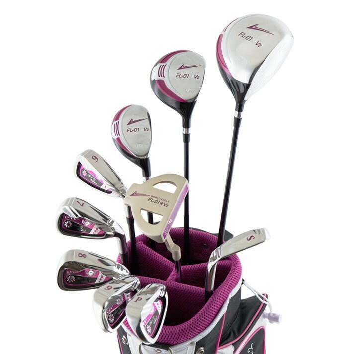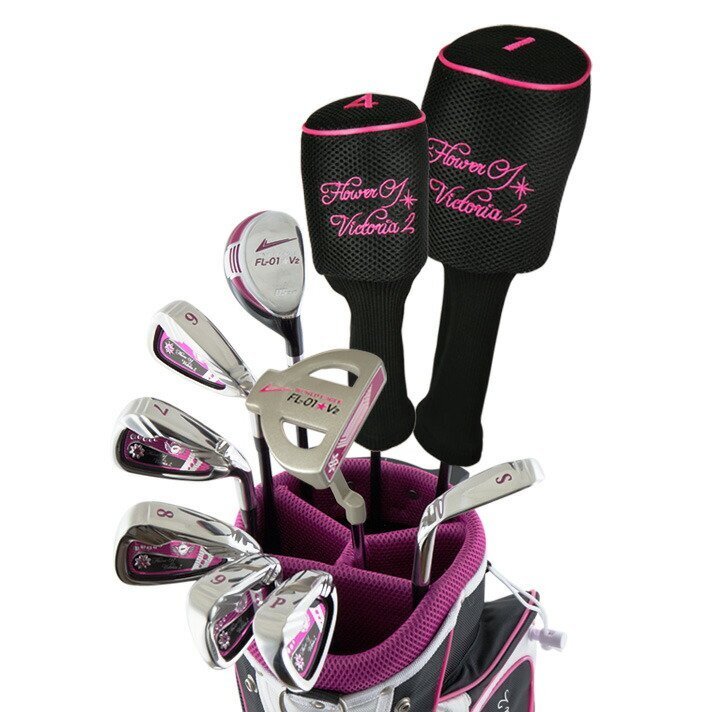 展示品アウトレット!ブラックピンクのROCK'N'ROLL!☆レディース13点ゴルフクラブセット 女性用/右用[19964]