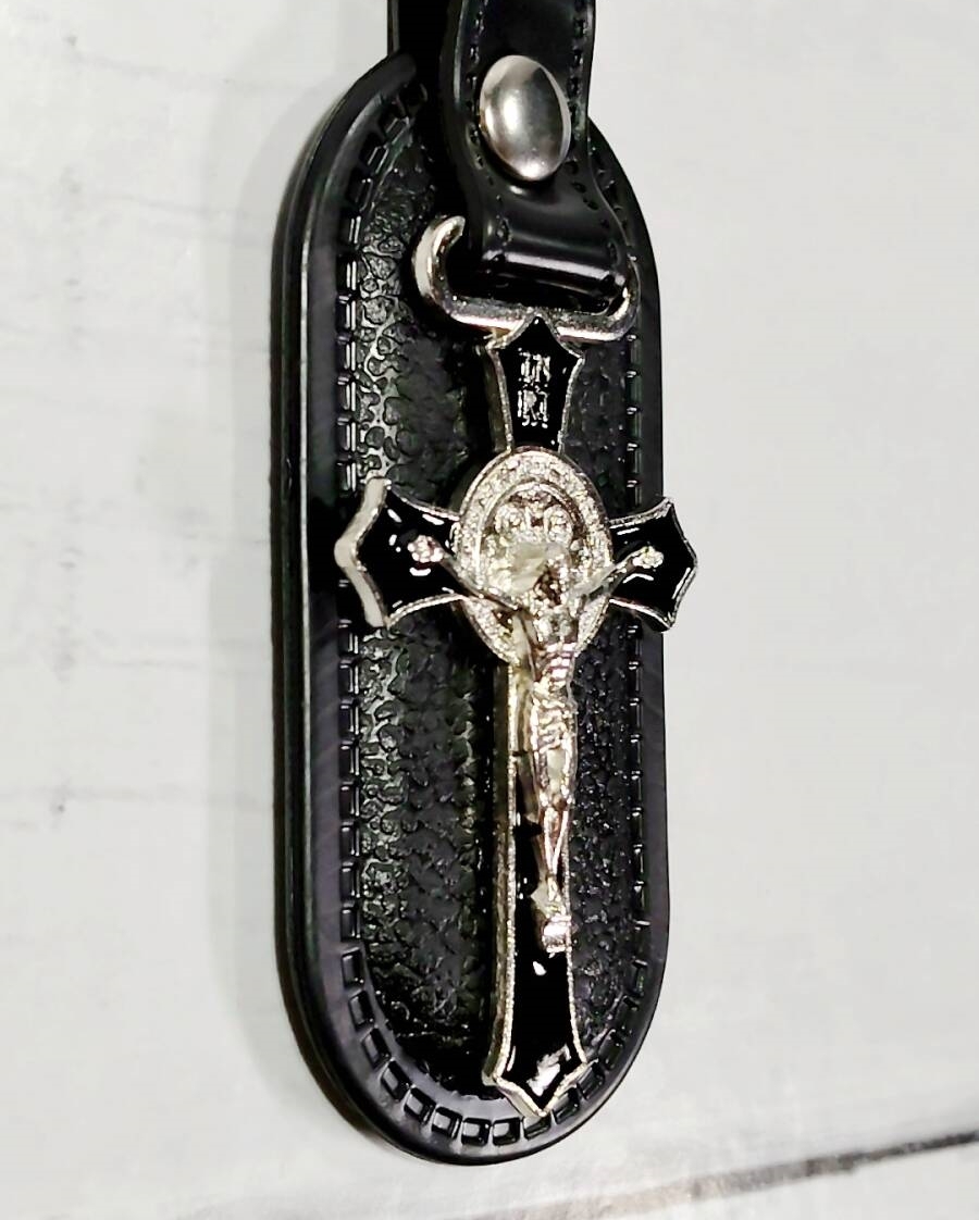 ●メタルプレートのサイズは縦48mm/横29mm、レザーマウントのサイズは縦76mm/横31mm、チェーンを含めた総重量は19gとなります。マウントはフェイクレザー製です。