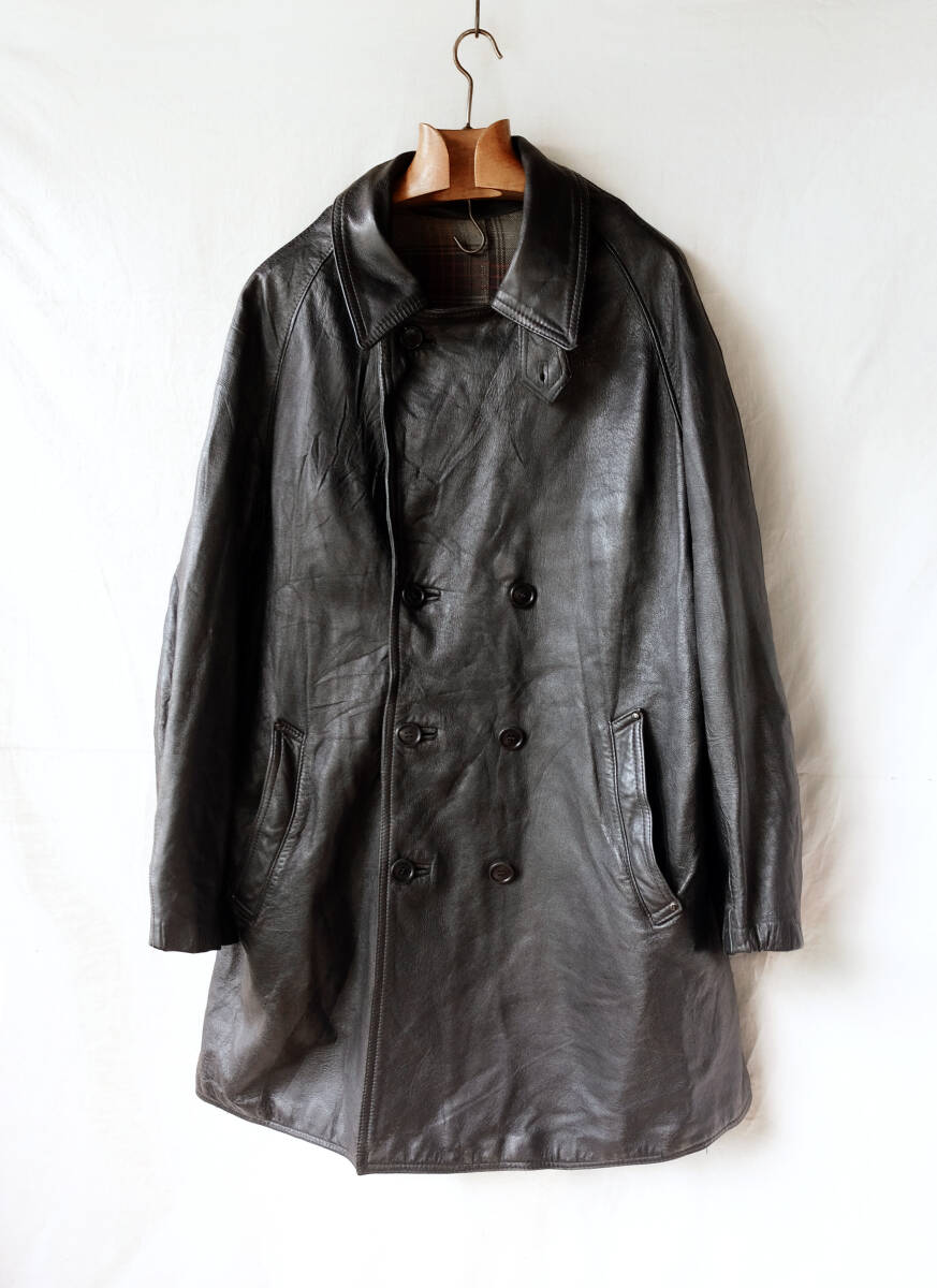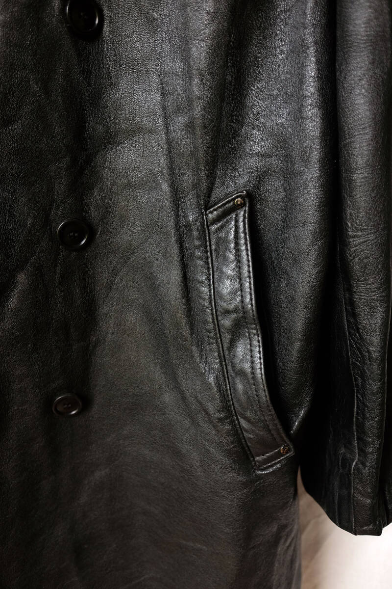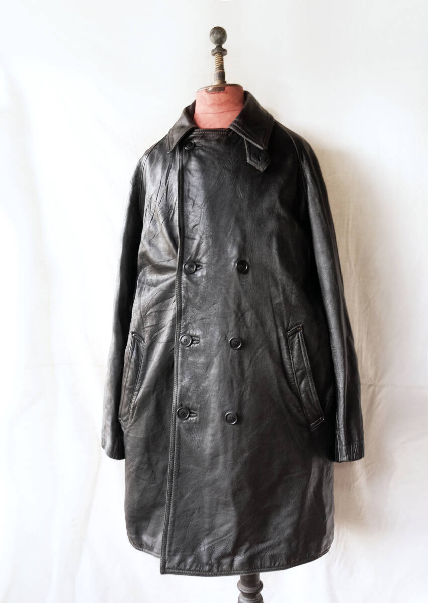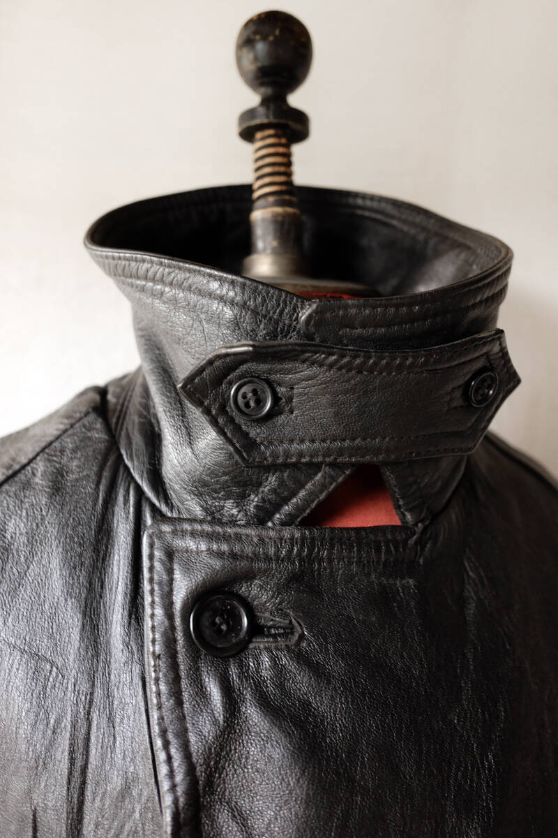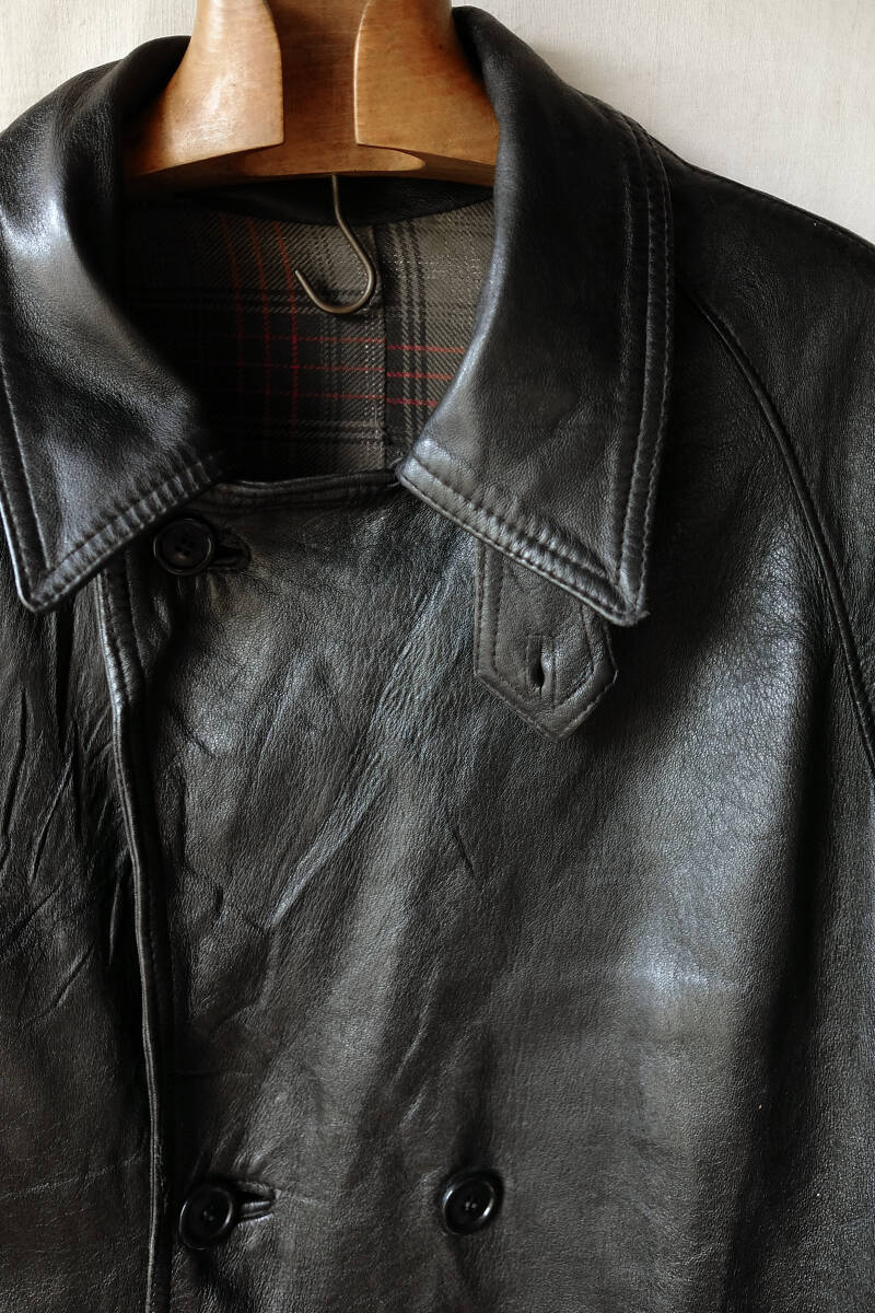 1950's 1960's フランス ヴィンテージ ブラックレザーカーコート チンスト ダブルブレスト 50s 60s ワークジャケット モーターサイクル