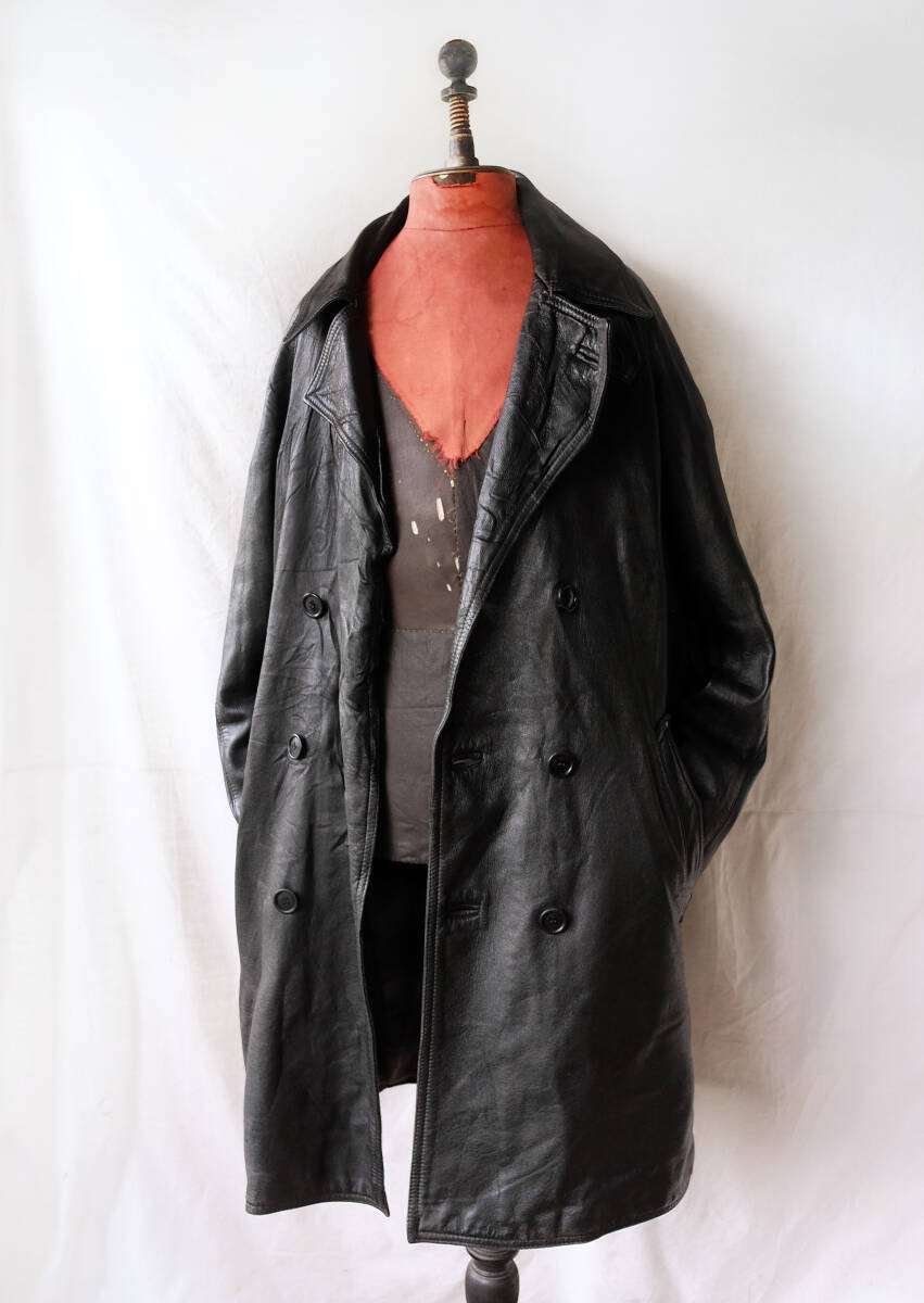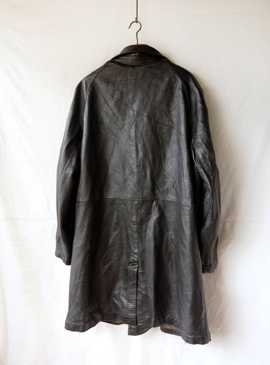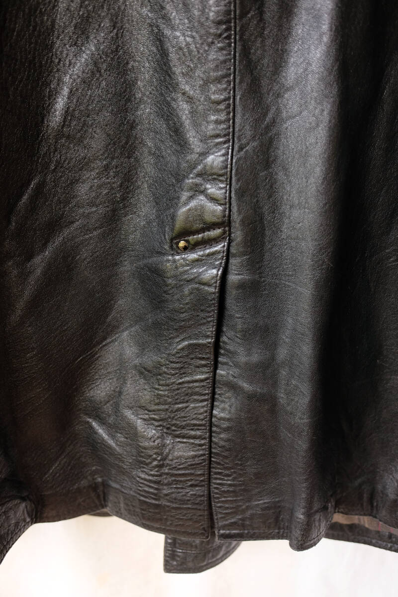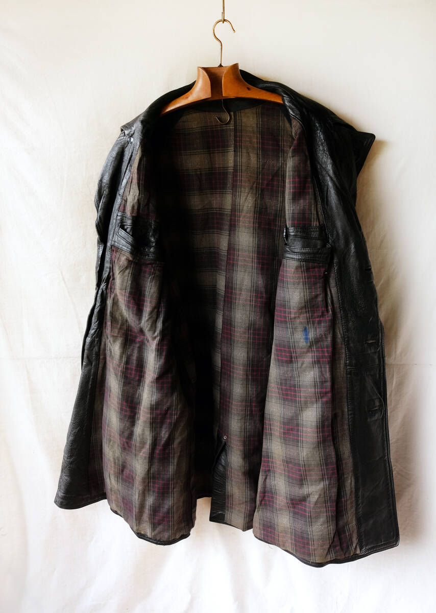 1950's 1960's フランス ヴィンテージ ブラックレザーカーコート チンスト ダブルブレスト 50s 60s ワークジャケット モーターサイクル