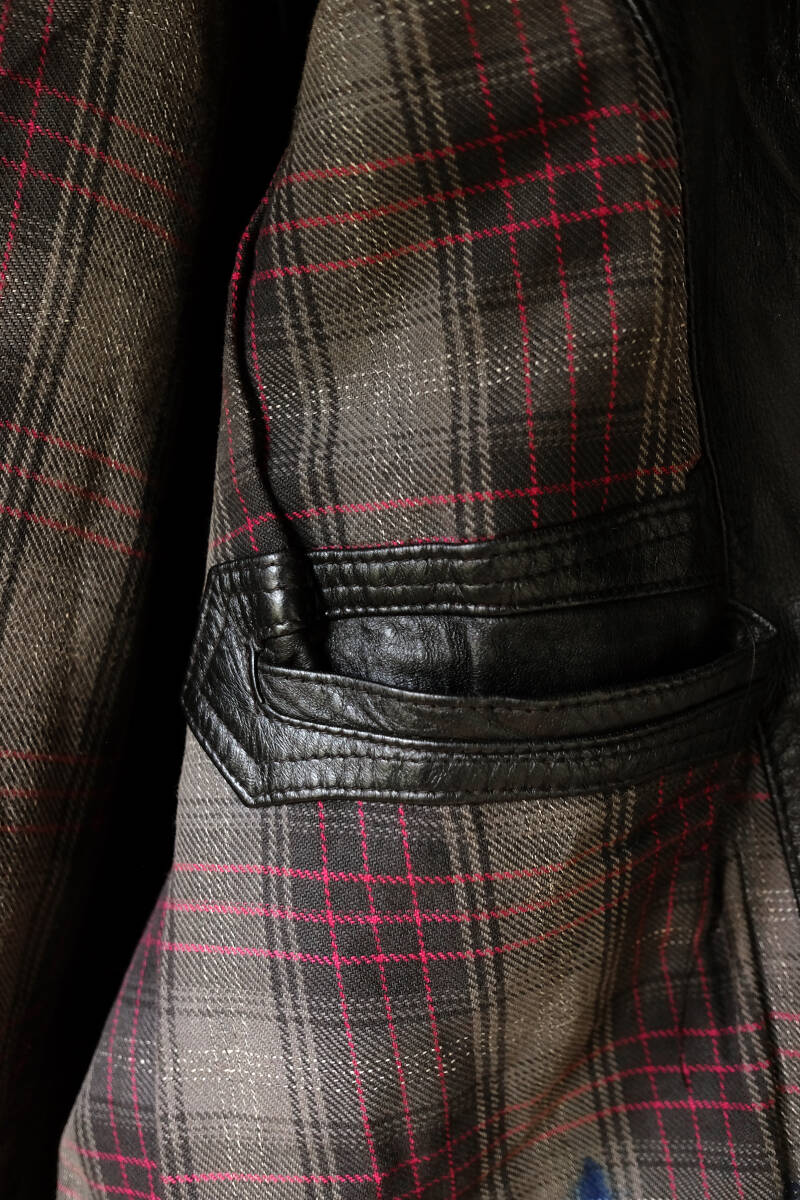 ハンティングジャケットなどに見られるものと同じグレー系に赤いラインの入る厚手コットン裏地、