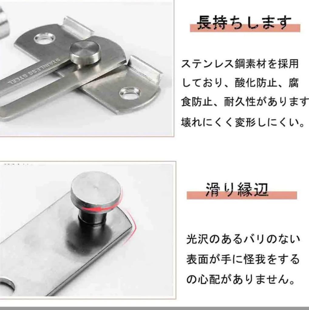 ドアロック 後付け 引き戸 ロック180度 内鍵 ネジ付き 室内ドア 鍵 後付け 部屋鍵後付け 直角ロック ステンレス製 ドア ラッチ スライド
