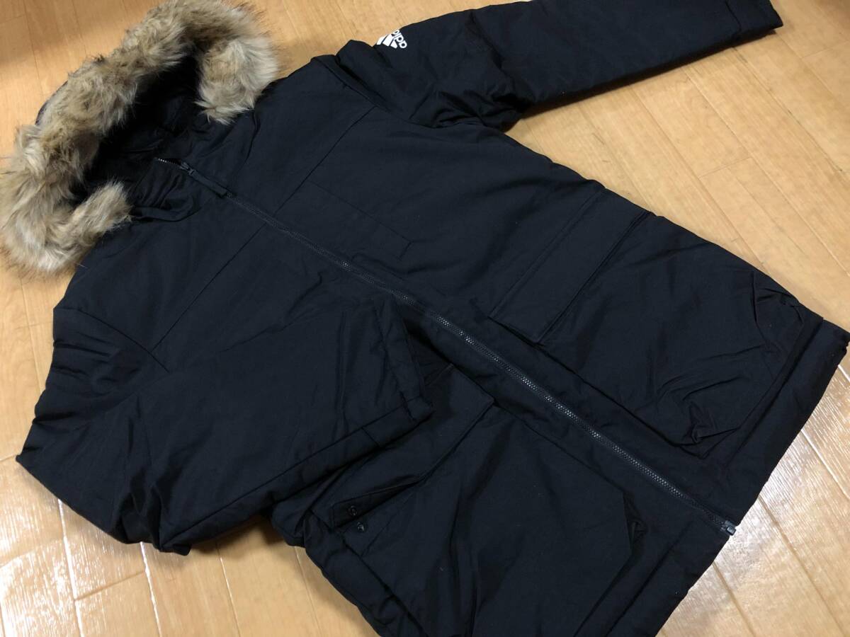 ・スピード発送 新品未使用 adidas(アディダス)秋冬 撥水加工、保温性 フード付き中綿ジャケット AV277(ブラック)L