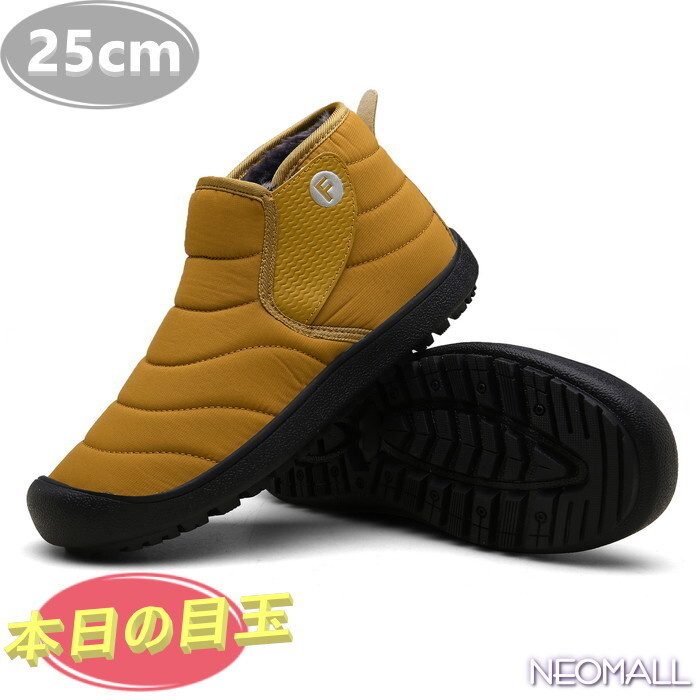 ユニセックス スノーシューズ 【869】 25.0cm キャメル ムートンブーツ スニーカー ウィンターブーツ 裏起毛 防水 防寒 防滑 冬用靴 綿靴