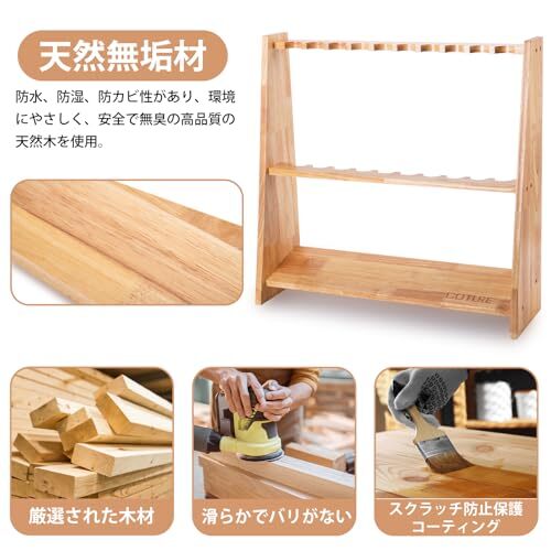 【優れた耐久性&高品質な素材】天然無垢のラバーウッドを使用し、表面は丁寧に磨かれ、コーティング処理が施されています。湿気防止、カビ防止、傷防止の効果があります。木の色は純正で、無臭なので、家庭内でロッド収納スタンドやロッド展示スタンドとして使用するのに適しています。家に特別な高級感を加える。
