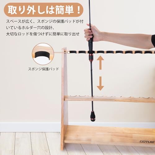 Goture ロッドスタンド 竿スタンド ロッドホルダー 10本立て 組立式 【日本語取扱説明書付き木製天然無垢材】 釣竿収納 釣り竿立て 収納 組み立て簡単 鑑賞 各種タイプの釣竿に適用