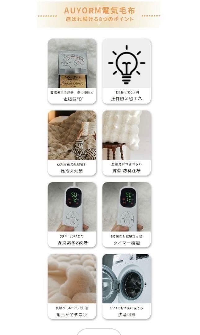 特に1~12時間(1-2-4-6-9-12時間)に6段階タイマー機能も搭載で、1時間単位で細かく時間設定できるものだと「少しだけ温めたい」というシーンで使いやすいです。