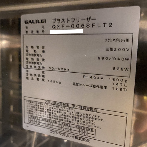 【業界最長1年保証】ブラストチラー フクシマガリレイ(福島工業) QXF-006SFLT2 業務用 中古/送料別途見積