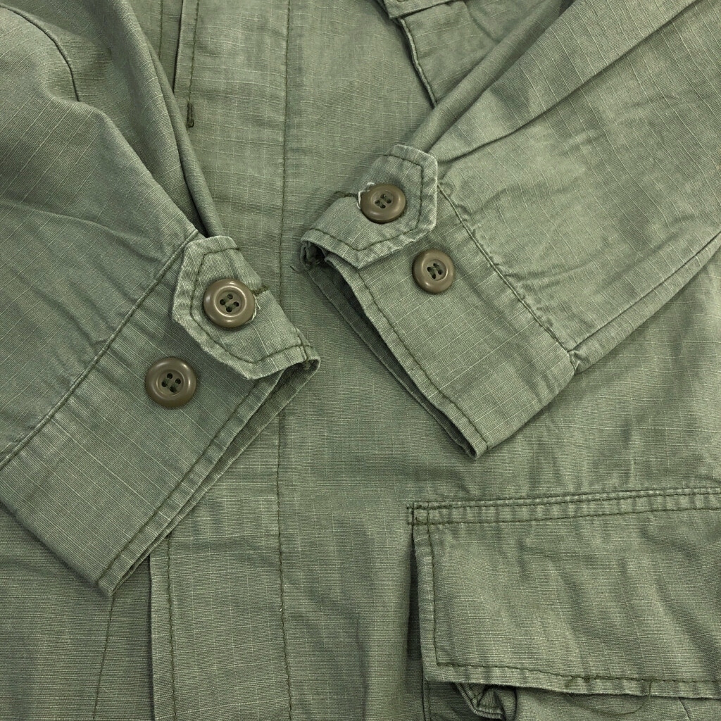 | 【商品管理番号】 U8555 【ブランド】 ROTHCO/ロスコ 【サイズ】 MEDIUM REGULAR 【実寸サイズ】 肩幅:約50cm 着丈:約80cm 身幅:約62cm 袖丈:約61cm 【主な素材】 表地 : コットン 【色】 オリーブ 【仕様】 リップストップ ミリタリー ファティーグジャケット 【状態】 汚れ:袖 特記事項:変色 | |||