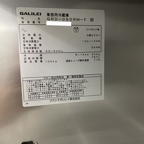 【業界最長1年保証】縦型冷蔵庫 フクシマガリレイ(福島工業) GRD-090RM-F 業務用 中古/送料別途見積