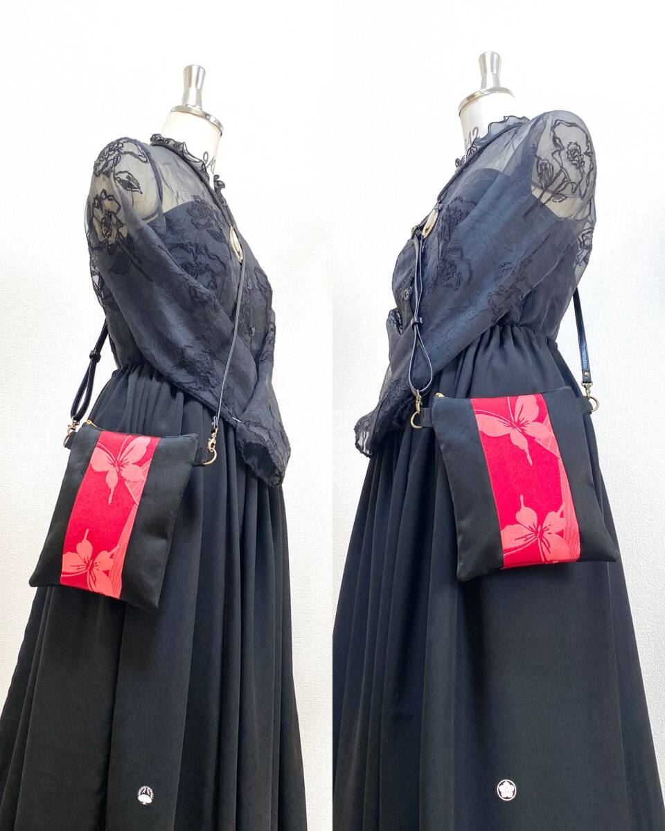 大人可愛いサコッシュバッグ帯リメイクサコッシュバッグ着物リメイクバッグスマホショルダー帯リメイクバッグハンドメイド送料込みNO.5861