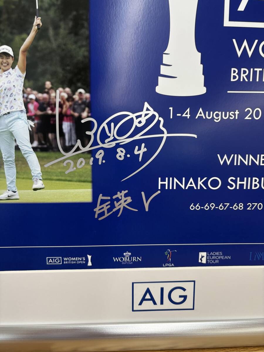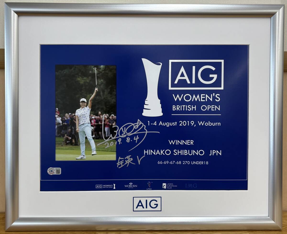 渋野日向子選手 全英女子オープン優勝フレームにシルバーペンで、”全英V”と日付入りのレアな直筆サイン