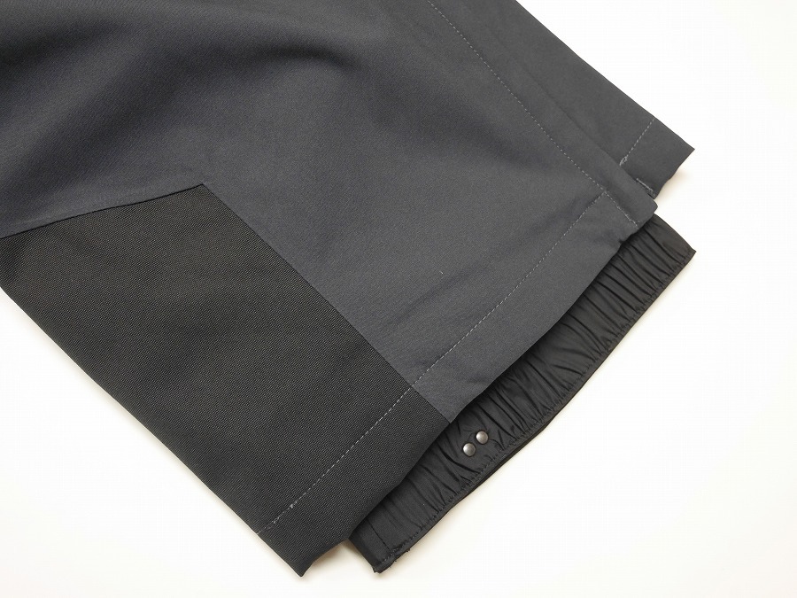 耐水圧、透湿性ともに10,000(mm, gm)の2レイヤーのビブパンツ。