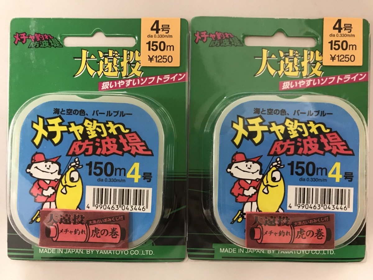 ★品名= メチャ釣れ 防波堤 ★号数= 4号 ★カラー= パールブルー(画像をご覧下さい) ★長さ= 150m ★本体価格= ¥1,250×2点 ・ご了承下さいませ。 |