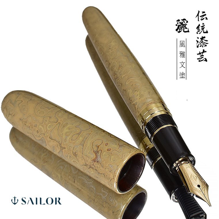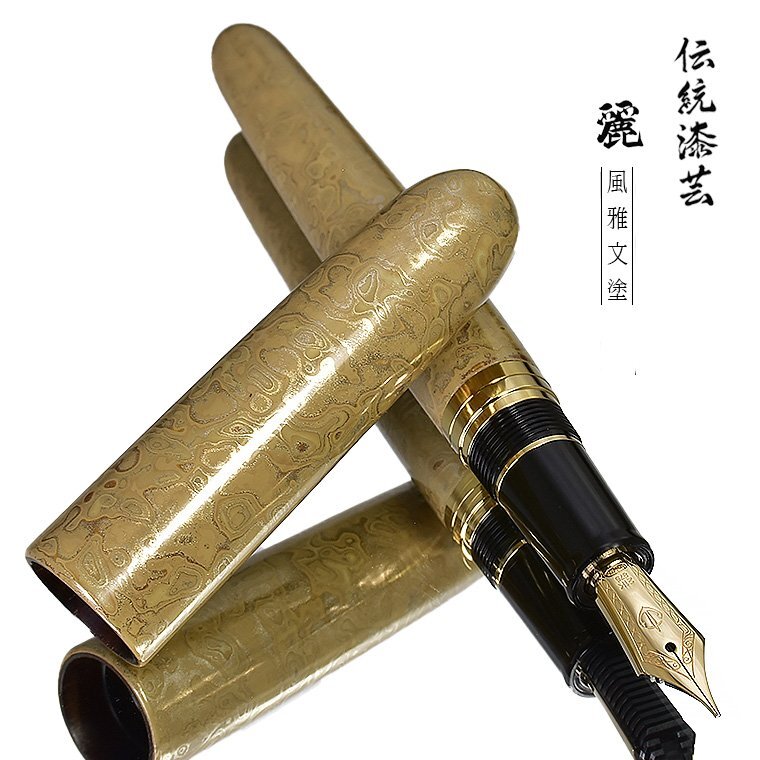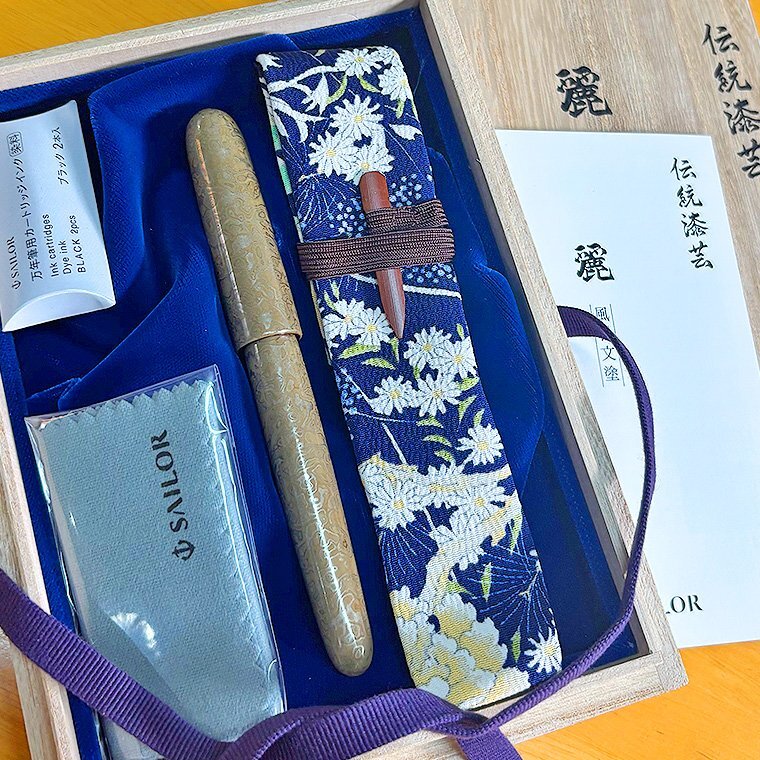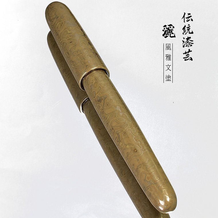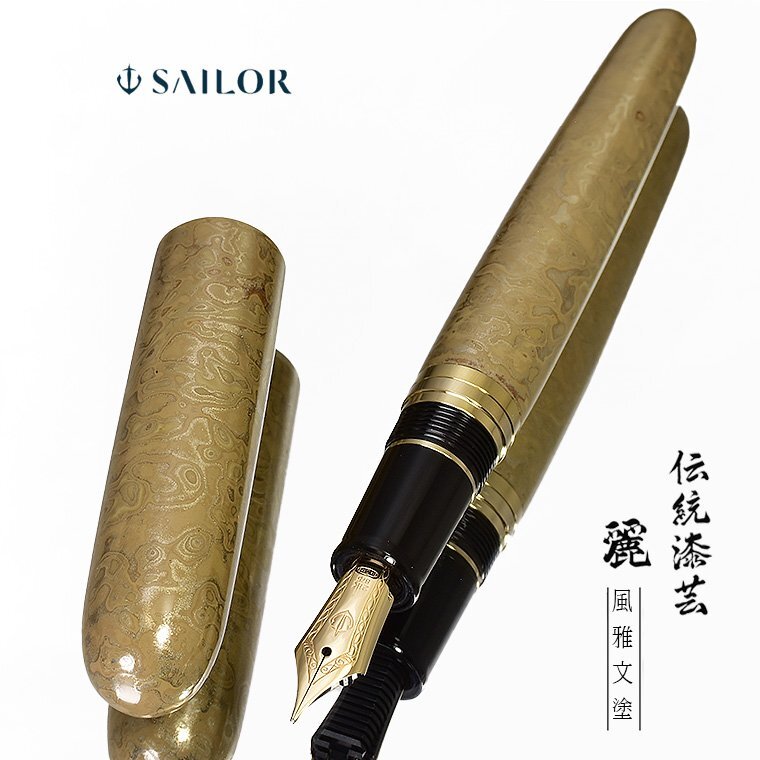 伝統漆芸 麗(れい)シリーズ 第四弾 "青森 風雅文塗" 万年筆 落栗色 全国各地の漆工を万年筆にする漆塗りシリーズ 21金大型ニブ M(中字)での出品 ![]() SAILOR/セーラー「伝統漆芸 麗シリーズ 青森 風雅文塗 万年筆」をご紹介します。 <伝統漆芸「麗」シリーズ> 漆塗りの調度品(漆器)の価値は奈良・平安時代、貴族社会の富の象徴、 神仏世界具現の麗美なものとして確立したとされます。 漆の語源とも云われる「麗(うるわし)」は、この上もなく美しいものを意味する言葉で、 日本の美の概念が 芽生え栄えたその時代ゆえ「漆」に「うるわしさ」を与える言葉として 漆に繋がっていったのは自然なことだともいえます。 日本の伝統の美しさや奥深さ、人に潤いと感動を与えるものとしての 「漆(漆器)」ゆえに、ペン軸始め付属の1本袋や桐箱に名高い真田紐と拘り、 すべて国産を意識し、伝統漆芸「麗」シリーズと名付けました。 ![]() 青森 風雅文塗は、日本の漆器産地で名高い青森津軽地方は寒冷地という土地柄ゆえ 漆の扱いが難しく、古くから研鑽を重ね、漆を重ね塗する変り塗が生まれました。 変り塗は漆塗によって表現するもので、漆と漆以外の素材(螺鈿・金粉・銀紛・もみ殻等の植物類など) を用いて表情を表した漆塗と、様々な漆を重ね塗りし漆だけの味わいで表したものと大きく2種類が あります。 中でも研ぎ出し変り塗という技法は、数十回漆を塗重ねることで堅牢な漆器になり、 また他に類をみない重ね塗の表情豊かな漆芸は、津軽塗の特長といえるものです。 当製品に施されている風雅文塗は、島守宏和氏が津軽研ぎ出し変り塗に創意工夫を重ね、 独自性を高め生まれた、先に述べた2種の漆塗り表現の特長を併せ持った作品です。 下漆塗・漆置・上漆塗・粉蒔き・かため漆塗など漆を数十回重ね塗りすることで、 それぞれの漆塗の重なりの中に様々な趣が表れ、これを研ぎ出すことで風雅な表情を生みだしています。 今回の出品は「落栗色」です 【落栗色】 栗の実の表皮のような、やや赤みを帯びた茶色。 古く平安の時代から高貴な中にも奥ゆかしさを感じさせ、上品さを表す時に使われていた色。 ![]() <創作漆芸作家 島守 宏和氏> 青森県八戸市生まれ。 大学にて工芸デザイン彫金科卒業、卒業制作展で優秀賞受賞。 津軽塗技術研修所(青森県弘前市)卒業。 津軽塗秀作展で優秀賞受賞。 2011年 歴史ある伝統の可能性を求め、創造性と感性溢れる漆芸と彫金の融合した 伝統工芸品の価値を高めるため、オリジナルブランド「LANDPROTECTO」を立ち上げる。 以後、作品展や企画展など数多く出展し好評を博している。 ![]() セーラーのペン芯は精密な機械で作り出され、ペン先の仕上げも万年筆職人により 1本1本厳しく検査された後、素晴らしい製品として送り出されるのです! ですから、どの万年筆も安定したインクフローと書き味を楽しむことができ、 この抜群の書き味は、一度味わってしまうと癖になりそうな逸品です。 しなやかな21金のニブは漢字のとめ・はね・はらいをきれいに表現してくれます。 セーラー万年筆の誇りが生きた書き味は、一度味わってしまうと癖になりそうな逸品です。 軸にはインクの耐食性に優れ、堅牢で狂いが少なく、使い込むほどにしっとりとした 感触の心地良さが感じられる「エボナイト材」を使用しています。 ![]() 付属物も日本製にこだわりました。 一本袋は、着物をほどいた生地を裁断し、一つ一つ手作りで仕上げております。 着物からとった上質な正絹の手ざわりは心地良く、すす竹から手作業で 削り出して作った爪も相まって、万年筆の収納に適した仕上がりです。 ※1本袋は画像とは色や柄が異なる場合がございます。 予めご了承ください。 ![]() 桐箱は漆製品の保管に最も適した素材と言われており、木目が細かく高品質な 国産桐を使用しております。結紐には千利休も茶道の道具箱に愛用したと いわれる伸びにくく丈夫な真田紐を使用しております。 この機会に、日本が誇る職人技術の粋を実感してみてください。 また、還暦や退職のお祝いなど、プレゼントにもお勧めです。 ![]() ********************************************************************** ≪詳細 【SAILOR/セーラー】伝統漆芸 麗 青森 風雅文塗(ふうがもんぬり) 万年筆 落栗色 21金 10-8836-480≫ 出品個数 :1個 ペン先 : 21金・大型 サイズ : M(中字) 機構 : カートリッジ・コンバーター両用式 材質 : 蓋・胴:エボナイト、青森風雅文塗 大先 :PMMA樹脂 長さ : 151mm 太さ : 17mm 重さ : 33g 付属品 :専用桐箱・ 真田紐 ・一本袋(画像とは色柄が異なる場合あり) ・クリーニングクロス・ カートリッジインク 2本・保証書・取扱説明書 本体価格 : 150,000円(税込165,000円) ※コンバーターは付属しません。 状態:新品未使用 ※気候や室内の温度変化、またセーラー出荷前の洗浄により、 ペン先に僅かな水滴がついている場合がございます。予めご了承ください。 ********************************************************************** |