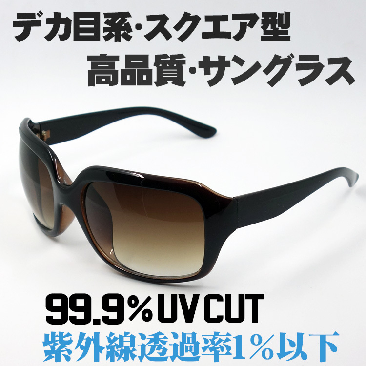 おしゃれ サングラス メンズ デカ目 でかめ 大きい スクエア UVカット 新品 ブラウン 茶