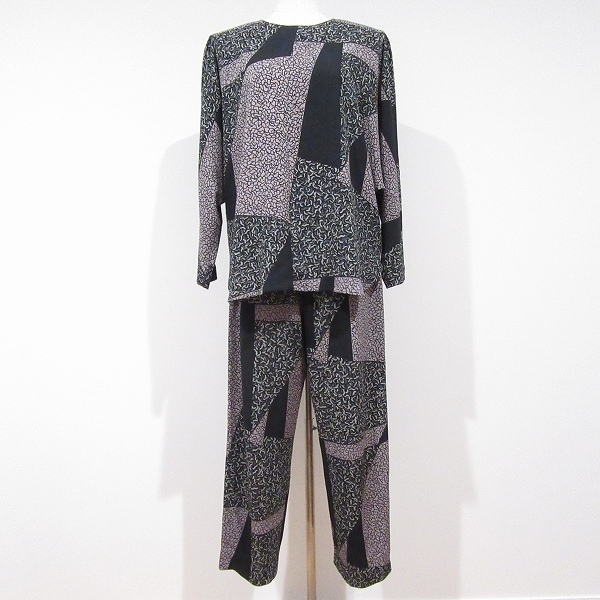 #anc シセンドウ 詩仙堂 セットアップ パンツスーツ ツーピース グレー 黒 ちりめん 総柄 日本製 レディース [975119]